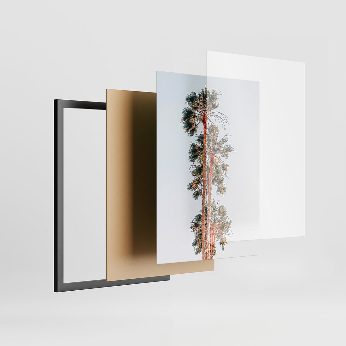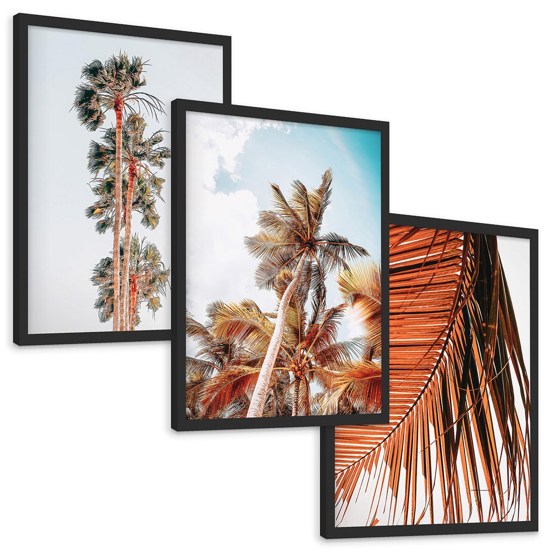 Zestaw obrazy w ramie, plakaty - palmy, tropikalny, lato - rama czarna