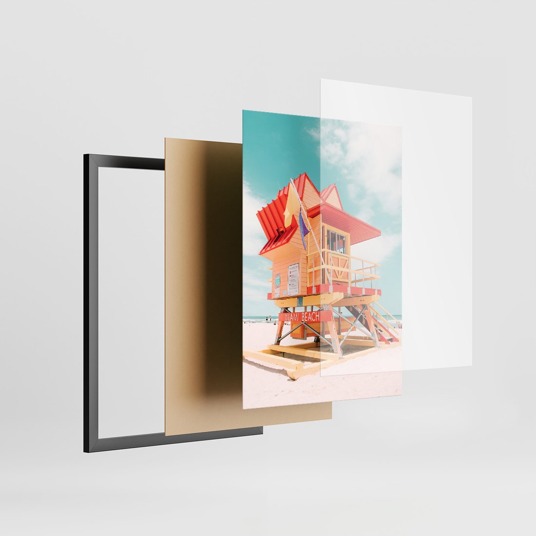 • Zestaw obrazy w ramie, plakaty - plaża, budynek, balony