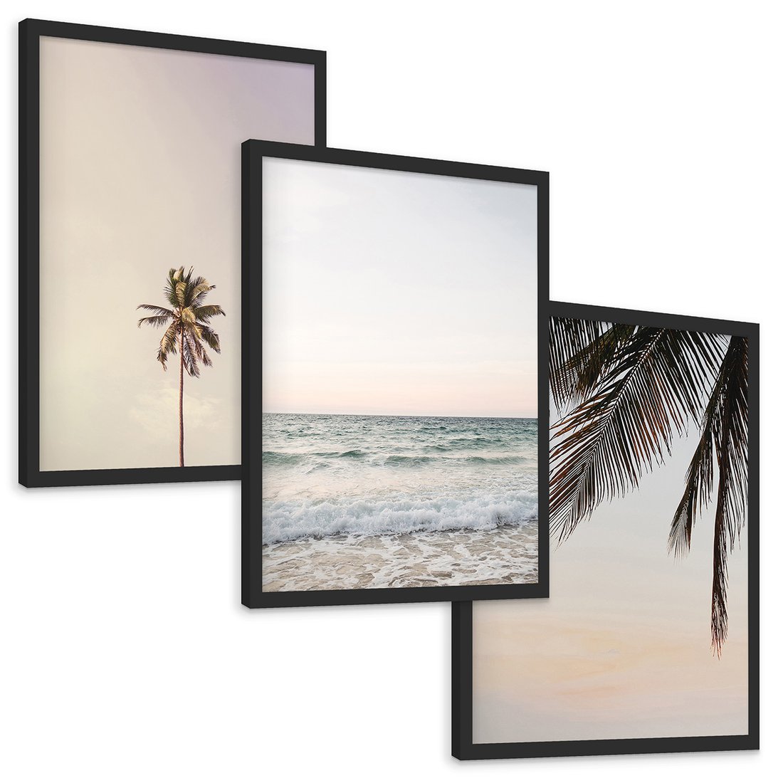 Zestaw obrazy w ramie, plakaty - plaża, morze, palmy - rama czarna