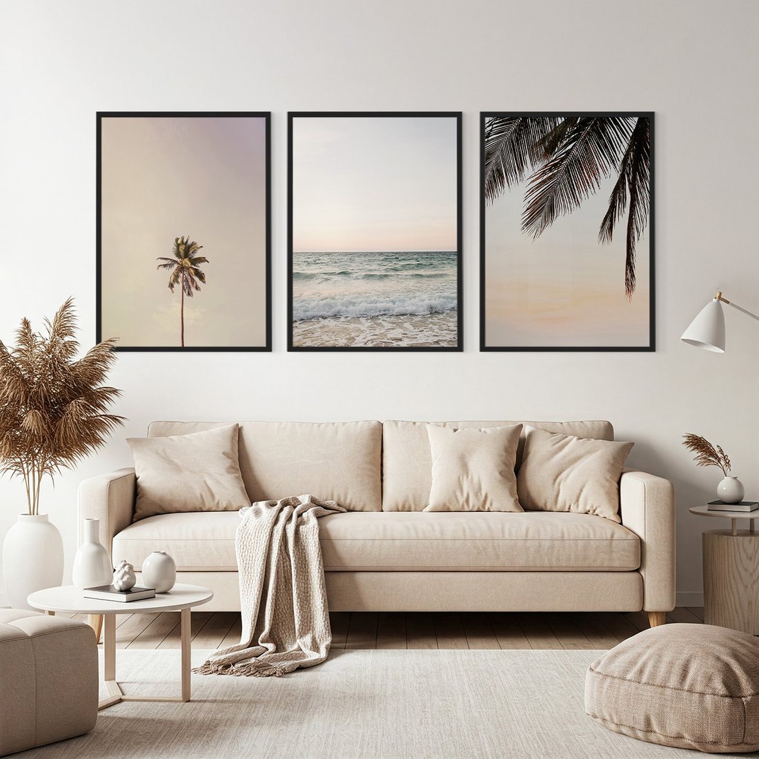 Przenieś piękno sztuki do swojego domu dzięki naszemu starannie skomponowanemu produktowi zestaw obrazów plaża, morze, palmy. Każdy plakat, oprawiony w elegancką ramę, łączy w sobie estetykę i trwałość. Uniwersalne wzornictwo sprawia, że te dekoracje ścienne doskonale komponują się z różnymi stylami wnętrz, od nowoczesnych po klasyczne. Łatwość montażu pozwala na szybką i bezproblemową metamorfozę Twojej przestrzeni. To również idealny pomysł na wyszukany prezent, który z pewnością zachwyci.