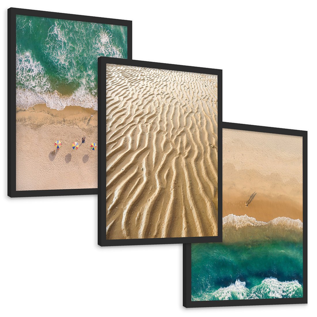 Zestaw obrazy w ramie, plakaty - plaża, morze, piasek - rama czarna