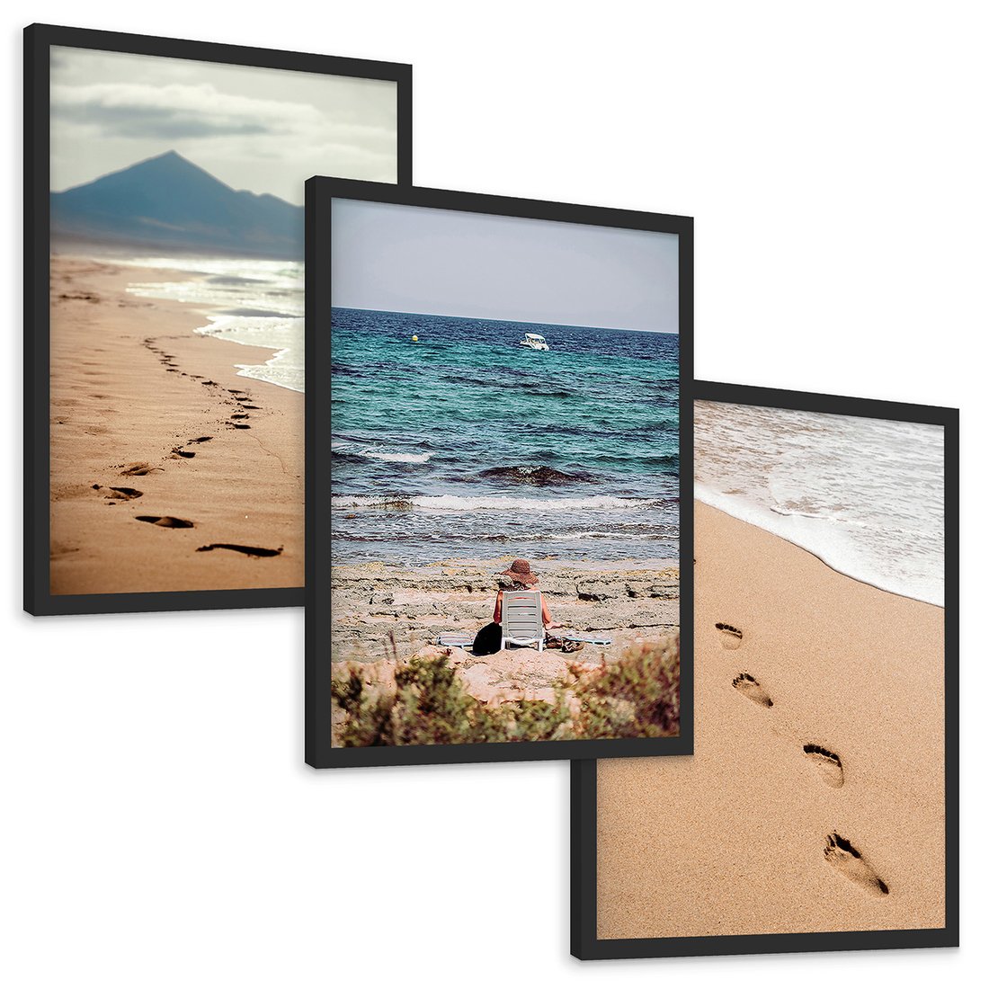 Zestaw obrazy w ramie, plakaty - plaża, morze, piasek - rama czarna