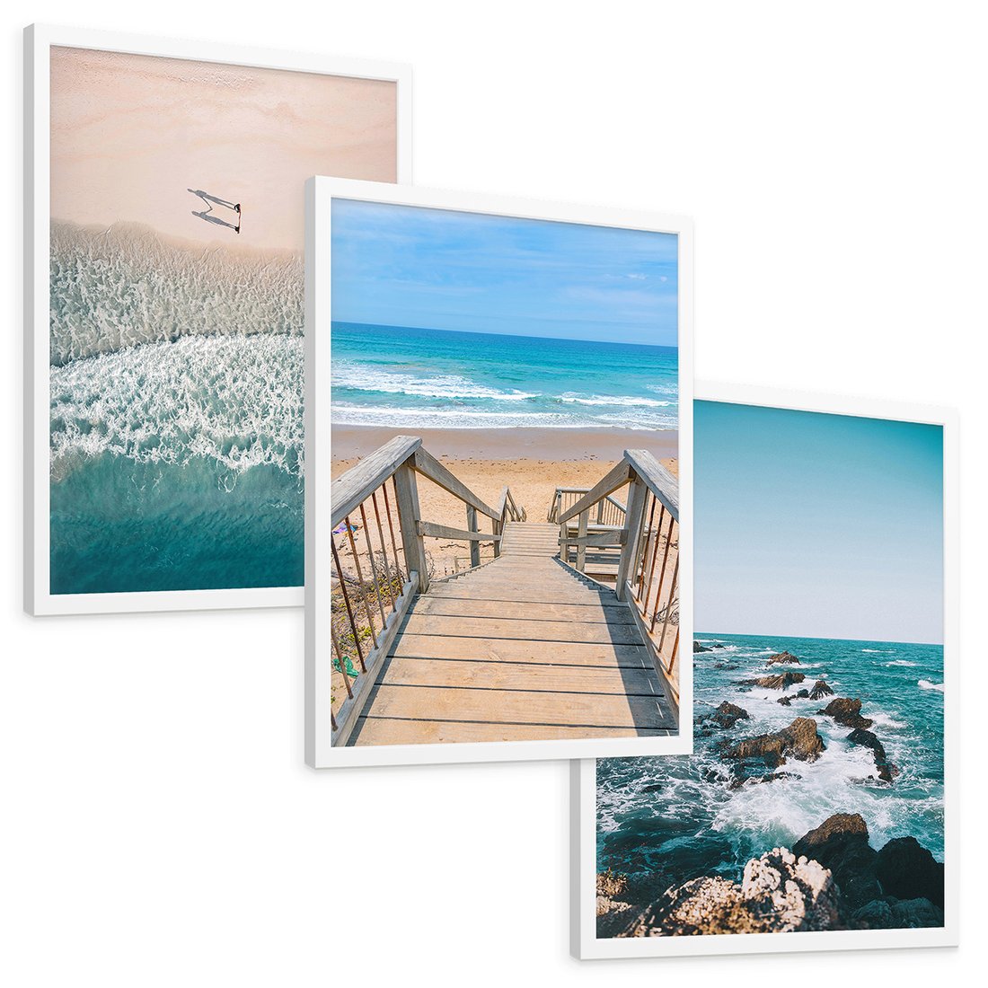Zestaw obrazy w ramie, plakaty - plaża, morze, woda - rama biała