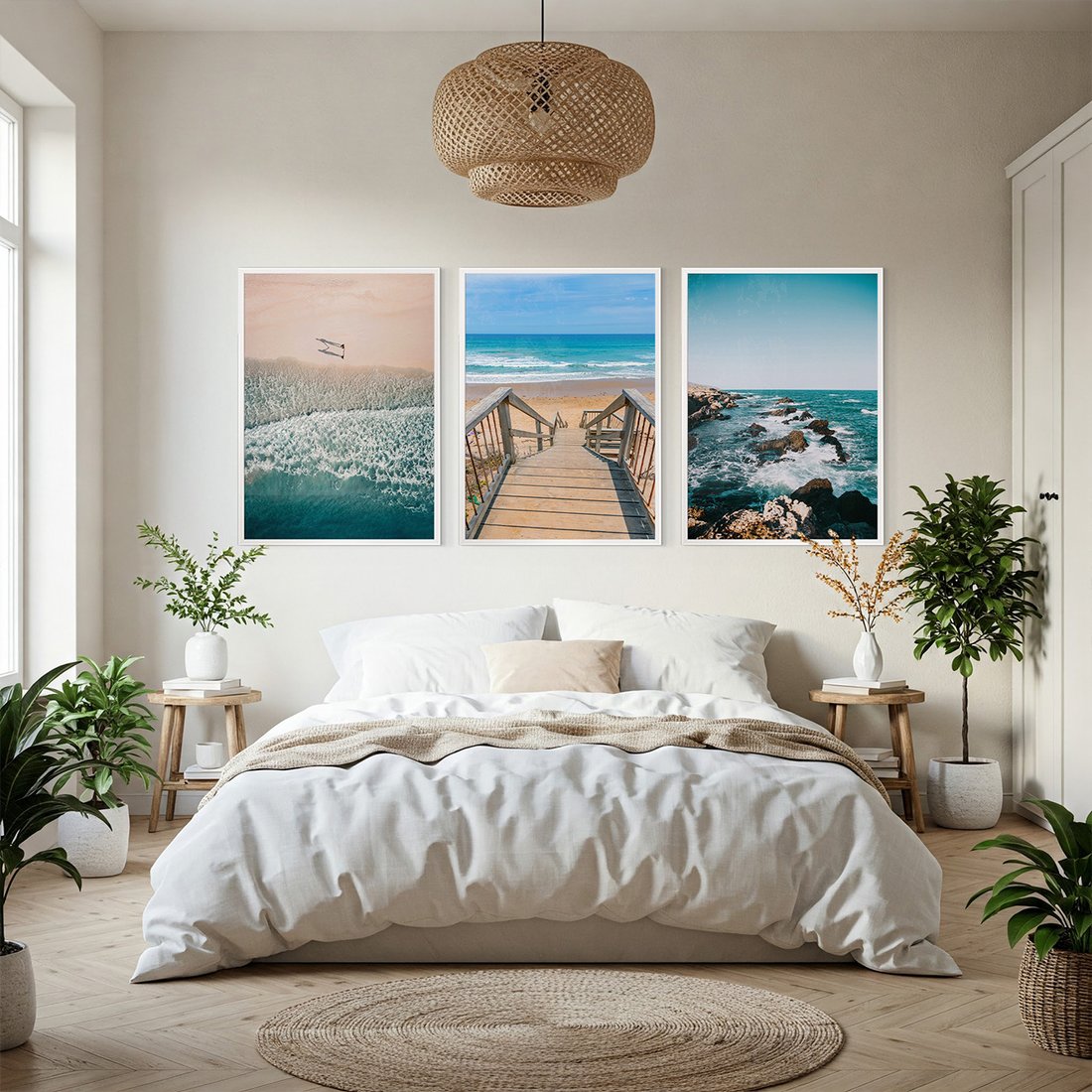 Przenieś piękno sztuki do swojego domu dzięki naszemu starannie skomponowanemu produktowi zestaw obrazów plaża, morze, woda. Każdy plakat, oprawiony w elegancką ramę, łączy w sobie estetykę i trwałość. Uniwersalne wzornictwo sprawia, że te dekoracje ścienne doskonale komponują się z różnymi stylami wnętrz, od nowoczesnych po klasyczne. Łatwość montażu pozwala na szybką i bezproblemową metamorfozę Twojej przestrzeni. To również idealny pomysł na wyszukany prezent, który z pewnością zachwyci.