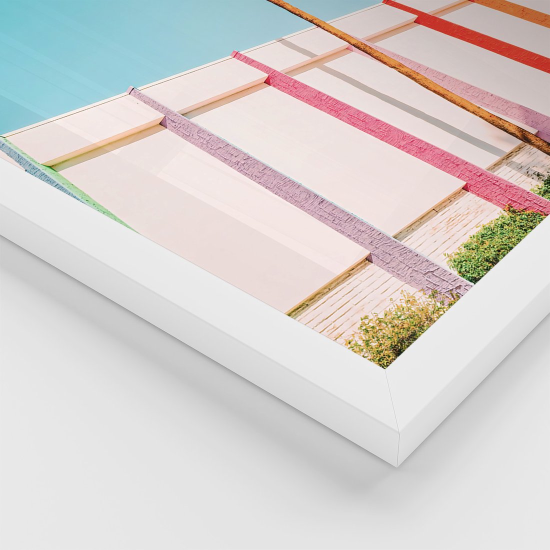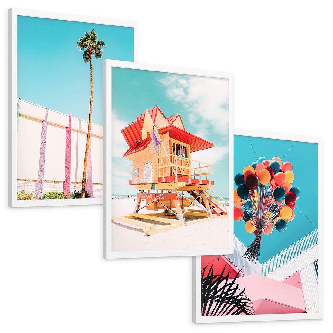 Zestaw obrazy w ramie, plakaty - plaża,palma,budynek - rama biała