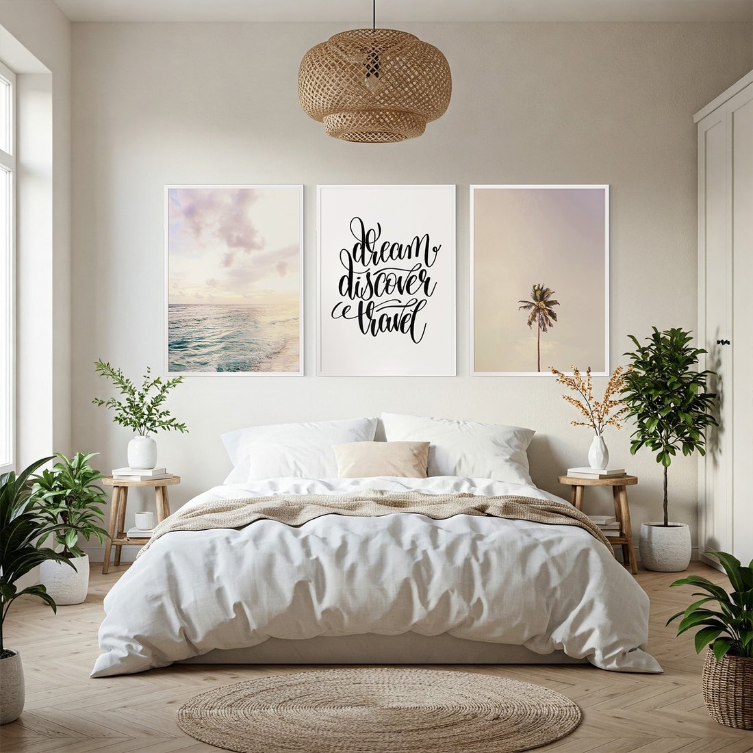 Przenieś piękno sztuki do swojego domu dzięki naszemu starannie skomponowanemu produktowi zestaw obrazów plaża,palma,napis. Każdy plakat, oprawiony w elegancką ramę, łączy w sobie estetykę i trwałość. Uniwersalne wzornictwo sprawia, że te dekoracje ścienne doskonale komponują się z różnymi stylami wnętrz, od nowoczesnych po klasyczne. Łatwość montażu pozwala na szybką i bezproblemową metamorfozę Twojej przestrzeni. To również idealny pomysł na wyszukany prezent, który z pewnością zachwyci.
