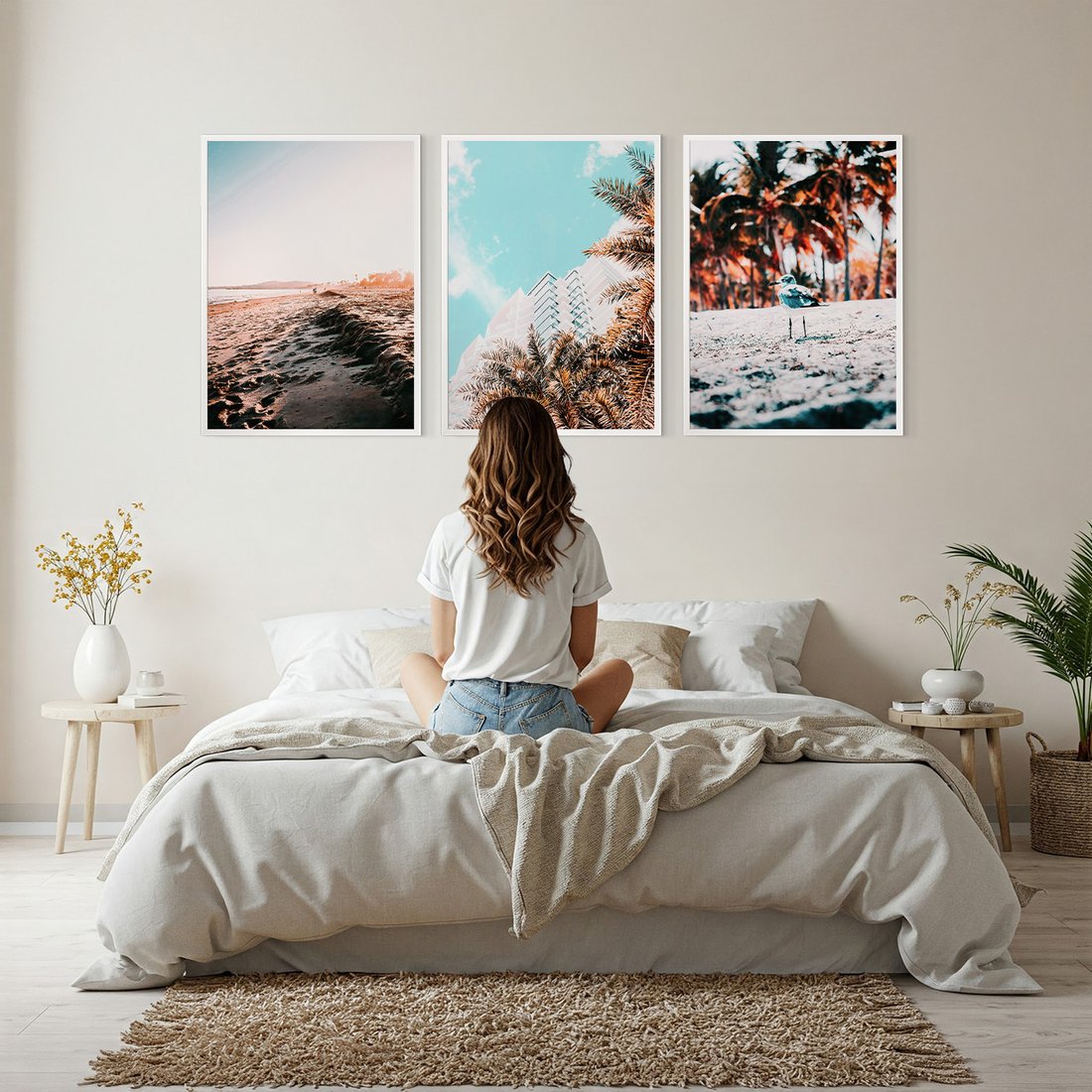 Przenieś piękno sztuki do swojego domu dzięki naszemu starannie skomponowanemu produktowi zestaw obrazów plaża, palmy, budynek. Każdy plakat, oprawiony w elegancką ramę, łączy w sobie estetykę i trwałość. Uniwersalne wzornictwo sprawia, że te dekoracje ścienne doskonale komponują się z różnymi stylami wnętrz, od nowoczesnych po klasyczne. Łatwość montażu pozwala na szybką i bezproblemową metamorfozę Twojej przestrzeni. To również idealny pomysł na wyszukany prezent, który z pewnością zachwyci.