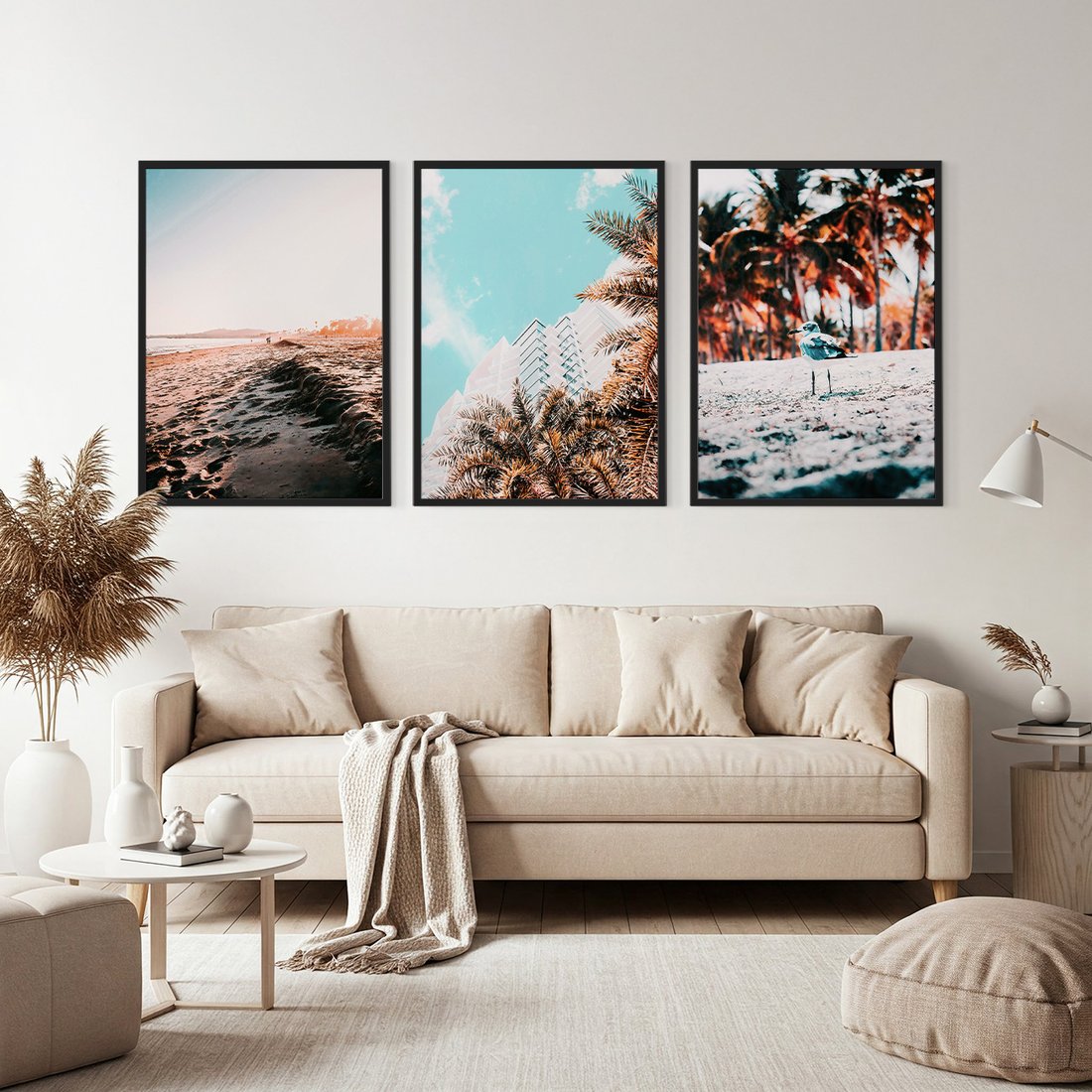 Przenieś piękno sztuki do swojego domu dzięki naszemu starannie skomponowanemu produktowi zestaw obrazów plaża, palmy, budynek. Każdy plakat, oprawiony w elegancką ramę, łączy w sobie estetykę i trwałość. Uniwersalne wzornictwo sprawia, że te dekoracje ścienne doskonale komponują się z różnymi stylami wnętrz, od nowoczesnych po klasyczne. Łatwość montażu pozwala na szybką i bezproblemową metamorfozę Twojej przestrzeni. To również idealny pomysł na wyszukany prezent, który z pewnością zachwyci.