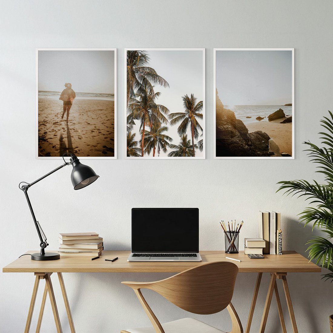 Przenieś piękno sztuki do swojego domu dzięki naszemu starannie skomponowanemu produktowi zestaw obrazów plaża, palmy, morze. Każdy plakat, oprawiony w elegancką ramę, łączy w sobie estetykę i trwałość. Uniwersalne wzornictwo sprawia, że te dekoracje ścienne doskonale komponują się z różnymi stylami wnętrz, od nowoczesnych po klasyczne. Łatwość montażu pozwala na szybką i bezproblemową metamorfozę Twojej przestrzeni. To również idealny pomysł na wyszukany prezent, który z pewnością zachwyci.