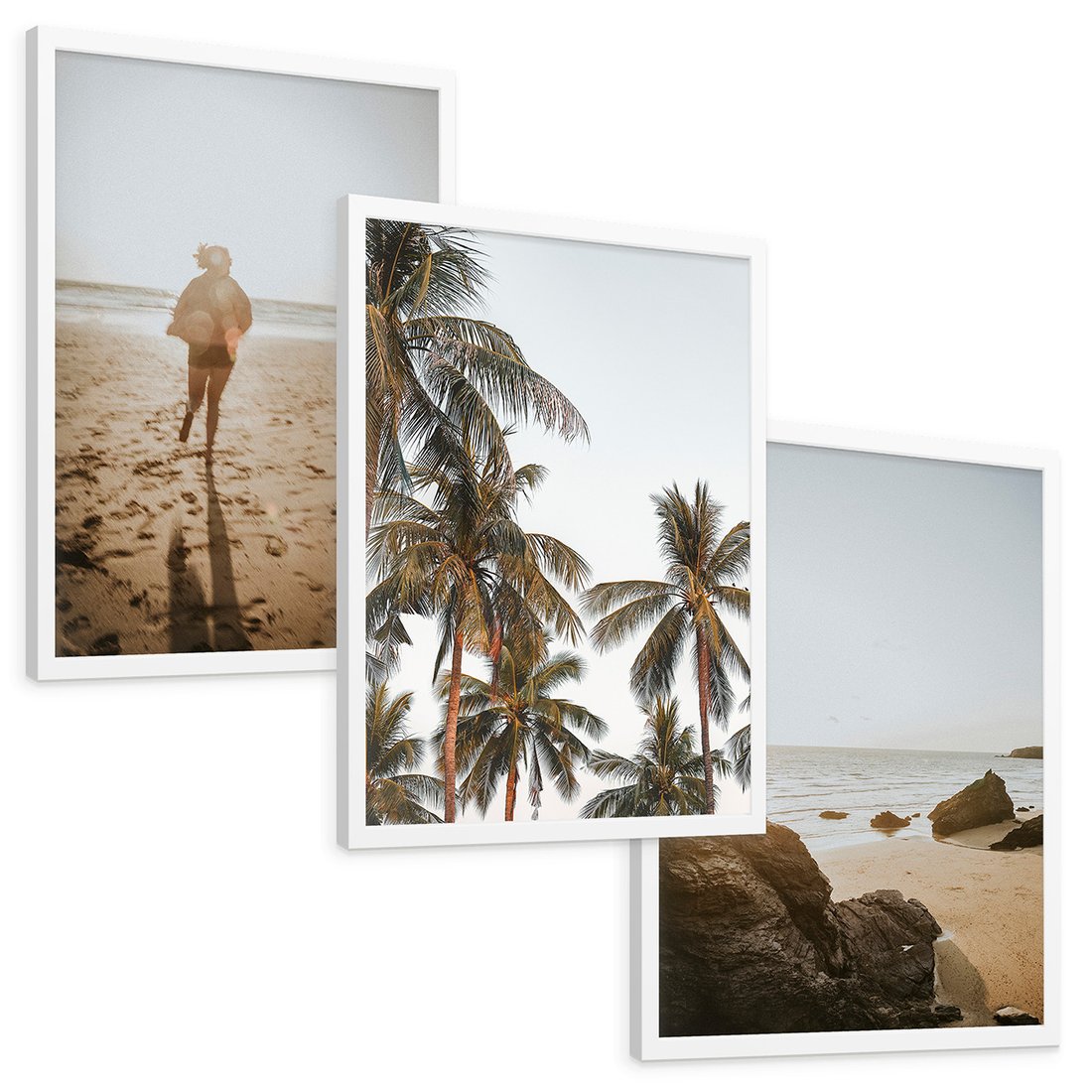 Zestaw obrazy w ramie, plakaty - plaża, palmy, morze - rama biała