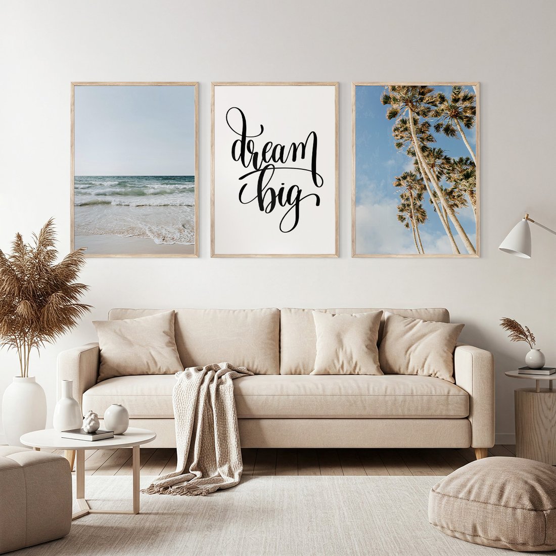 Przenieś piękno sztuki do swojego domu dzięki naszemu starannie skomponowanemu produktowi zestaw obrazów plaża,palmy,morze. Każdy plakat, oprawiony w elegancką ramę, łączy w sobie estetykę i trwałość. Uniwersalne wzornictwo sprawia, że te dekoracje ścienne doskonale komponują się z różnymi stylami wnętrz, od nowoczesnych po klasyczne. Łatwość montażu pozwala na szybką i bezproblemową metamorfozę Twojej przestrzeni. To również idealny pomysł na wyszukany prezent, który z pewnością zachwyci.