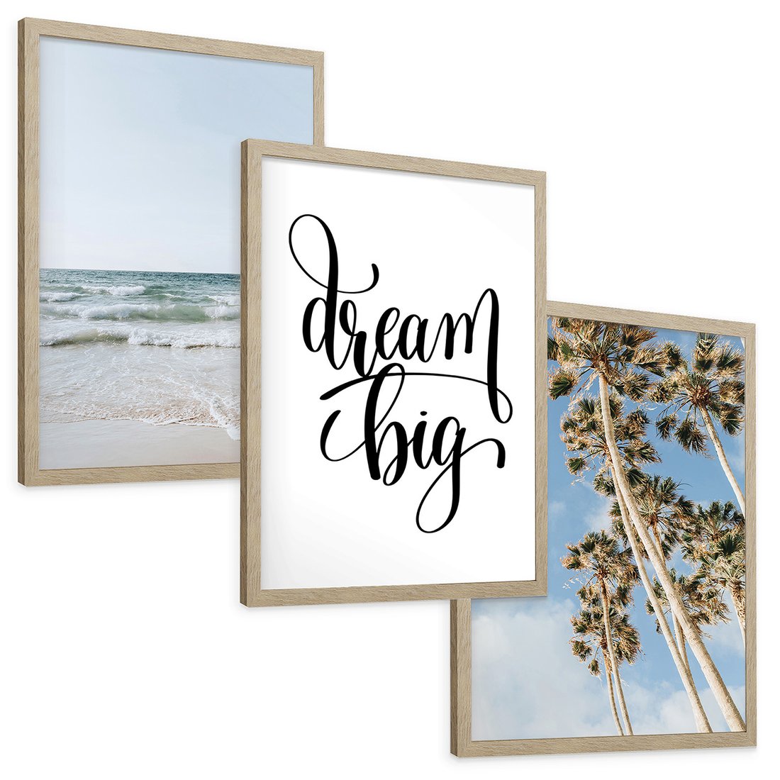 Zestaw obrazy w ramie, plakaty - plaża,palmy,morze - rama drewno