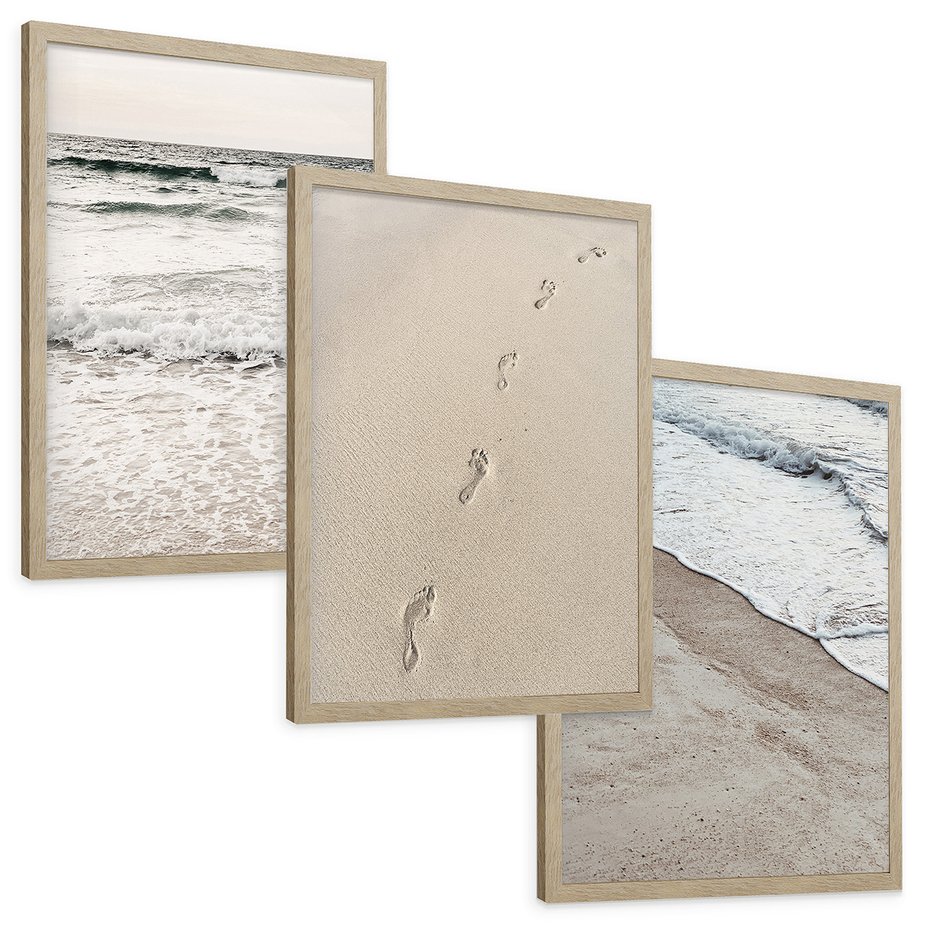 Zestaw obrazy w ramie, plakaty - plaża, piasek, morze - rama drewno