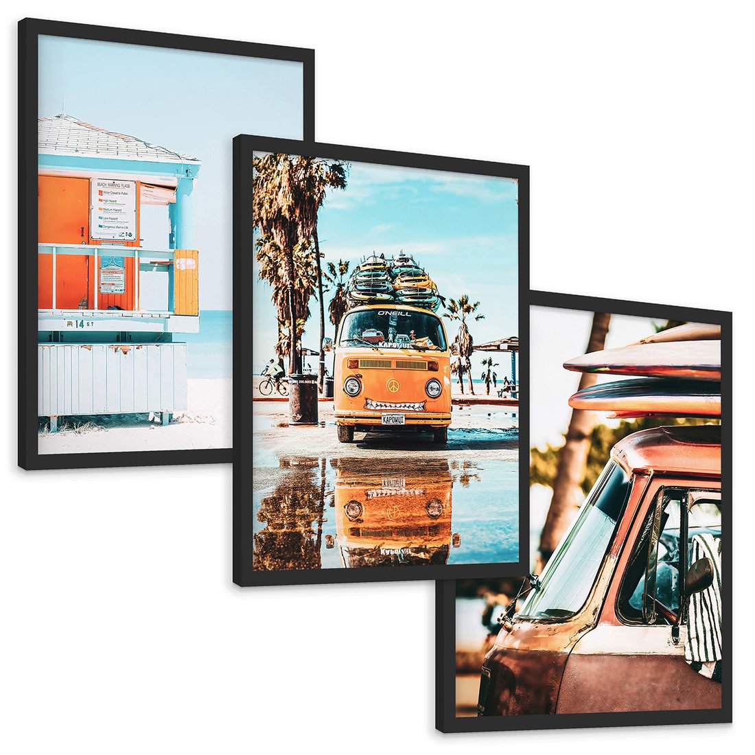 Zestaw obrazy w ramie, plakaty - plaża, wakacje, lato - rama czarna