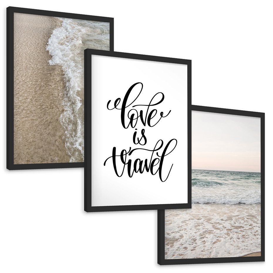 Zestaw obrazy w ramie, plakaty - plaża, woda, morze - rama czarna