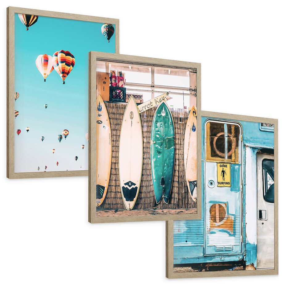 Zestaw obrazy w ramie, plakaty - podróże, plaża, wakacje - rama drewno