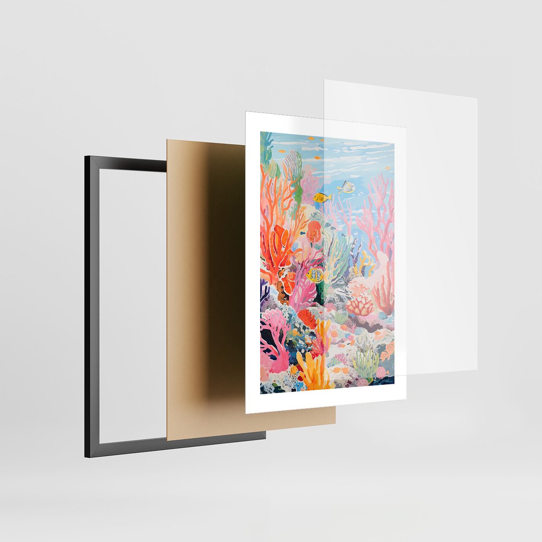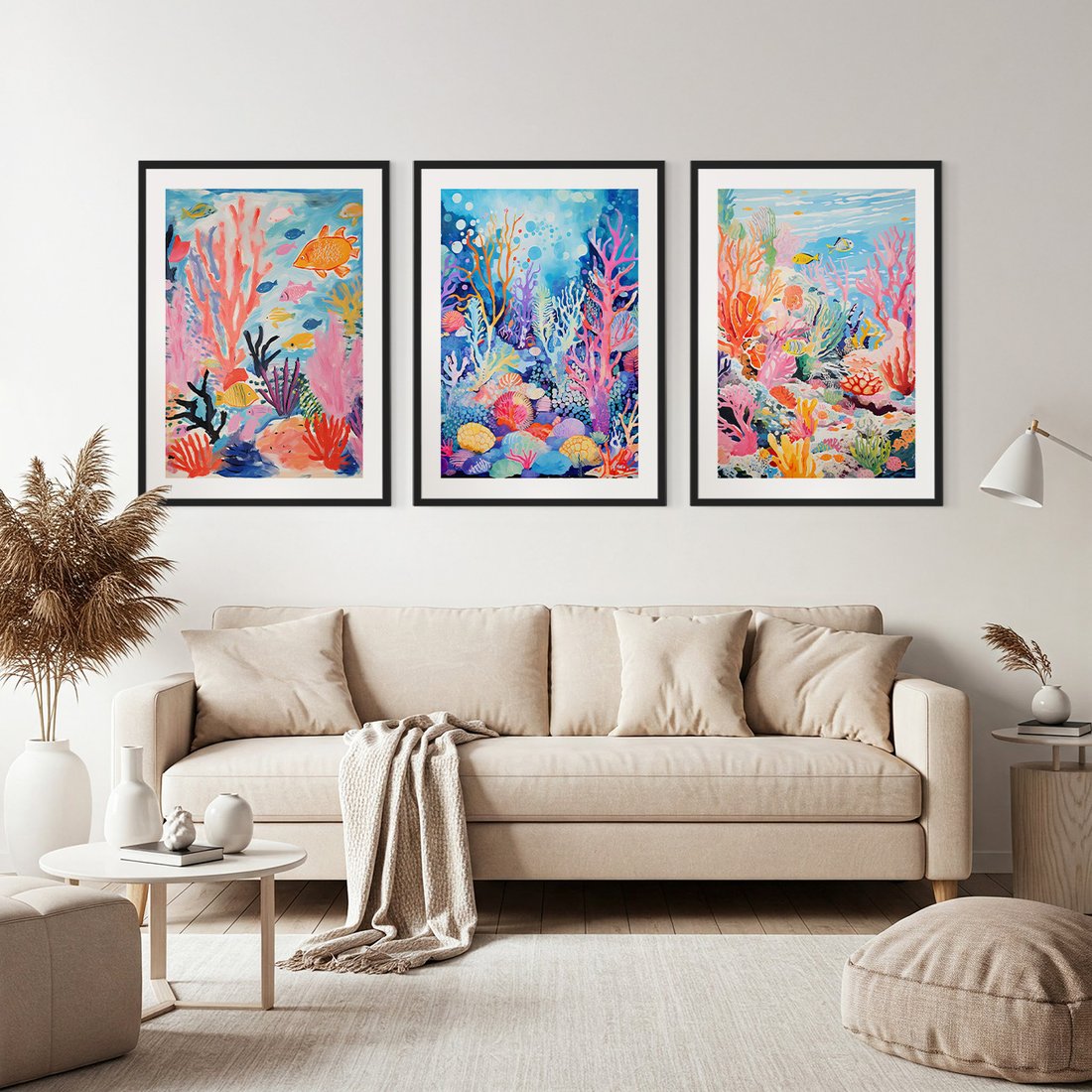 - Zestaw obrazy w ramie, plakaty - podwodny, rafa, ryby