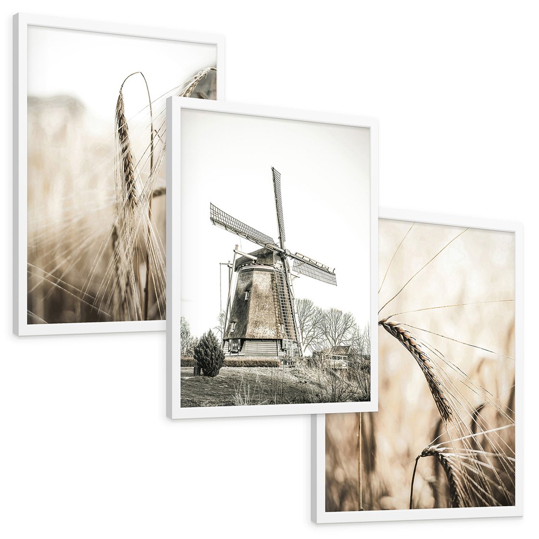 Zestaw obrazy w ramie, plakaty - pole, wieś, żniwa - rama biała