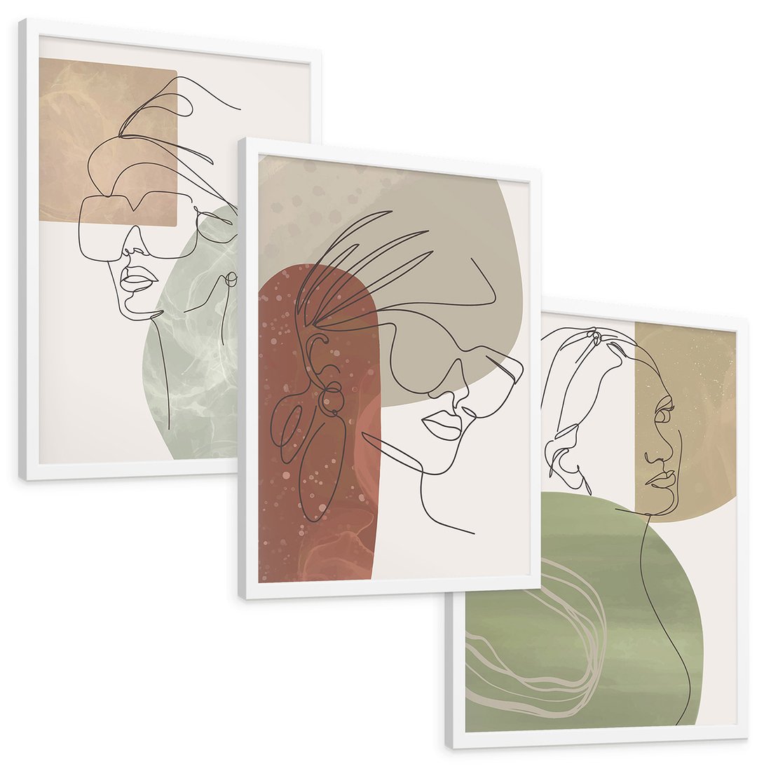 Zestaw obrazy w ramie, plakaty - portret, kobieta, abstrakcja - rama biała