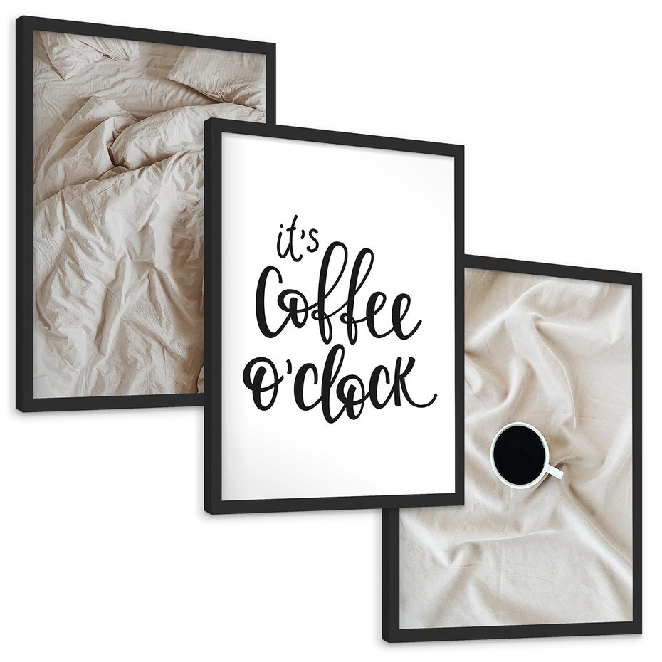 Zestaw obrazy w ramie, plakaty - pościel, kawa, relaks - rama czarna