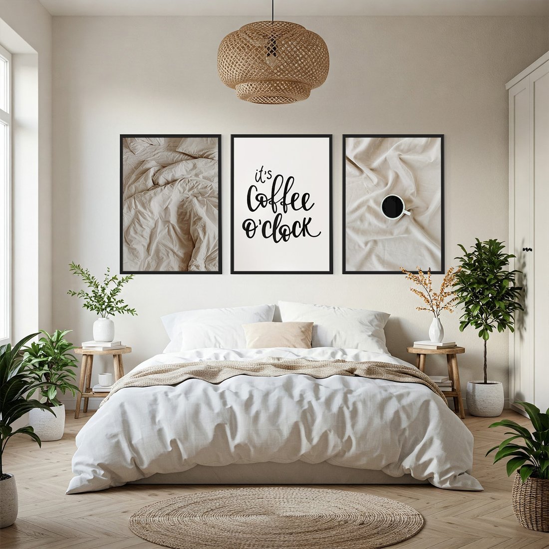 - Zestaw obrazy w ramie, plakaty - pościel, kawa, relaks