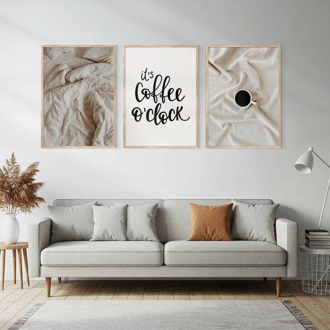 • Zestaw obrazy w ramie, plakaty - pościel, kawa, relaks