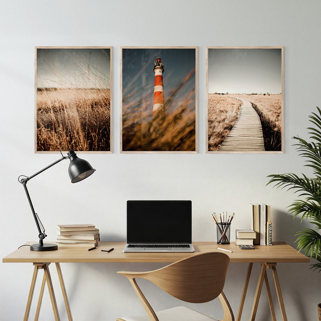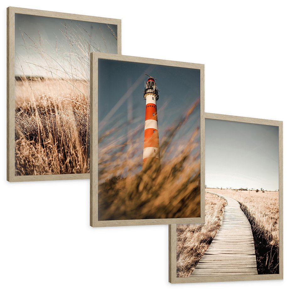 Zestaw obrazy w ramie, plakaty - przyroda, krajobraz, wydma - rama drewno