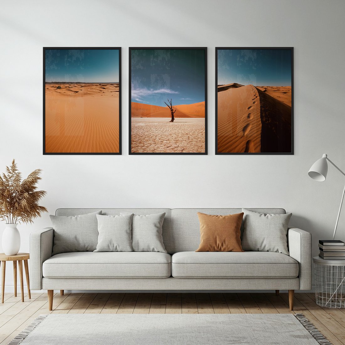 - Zestaw obrazy w ramie, plakaty - pustynia, piasek, niebo