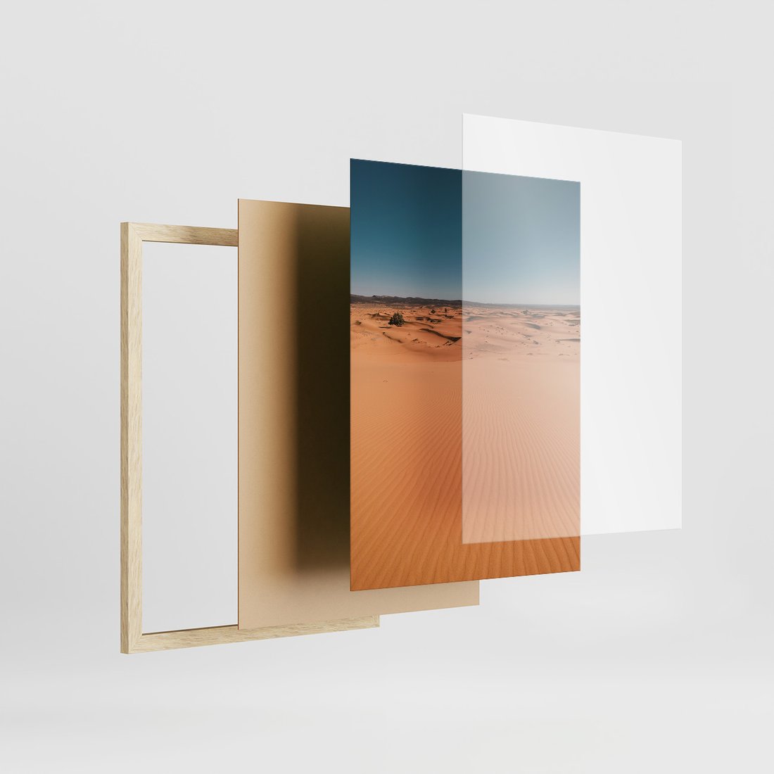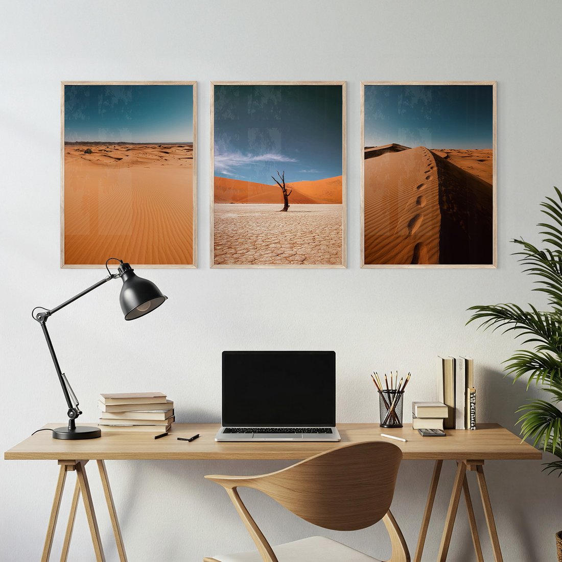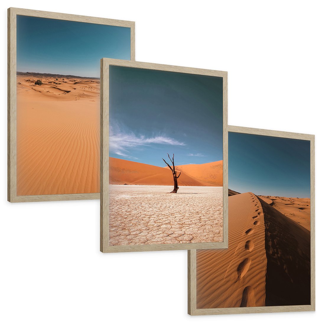 Zestaw obrazy w ramie, plakaty - pustynia, piasek, niebo - rama drewno