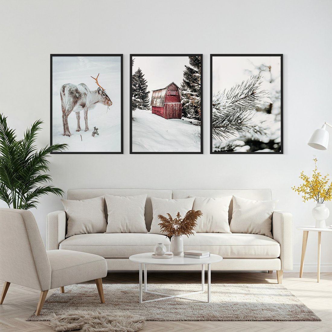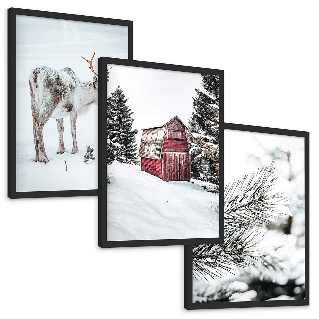 • Zestaw obrazy w ramie, plakaty - renifer, śnieg, zima