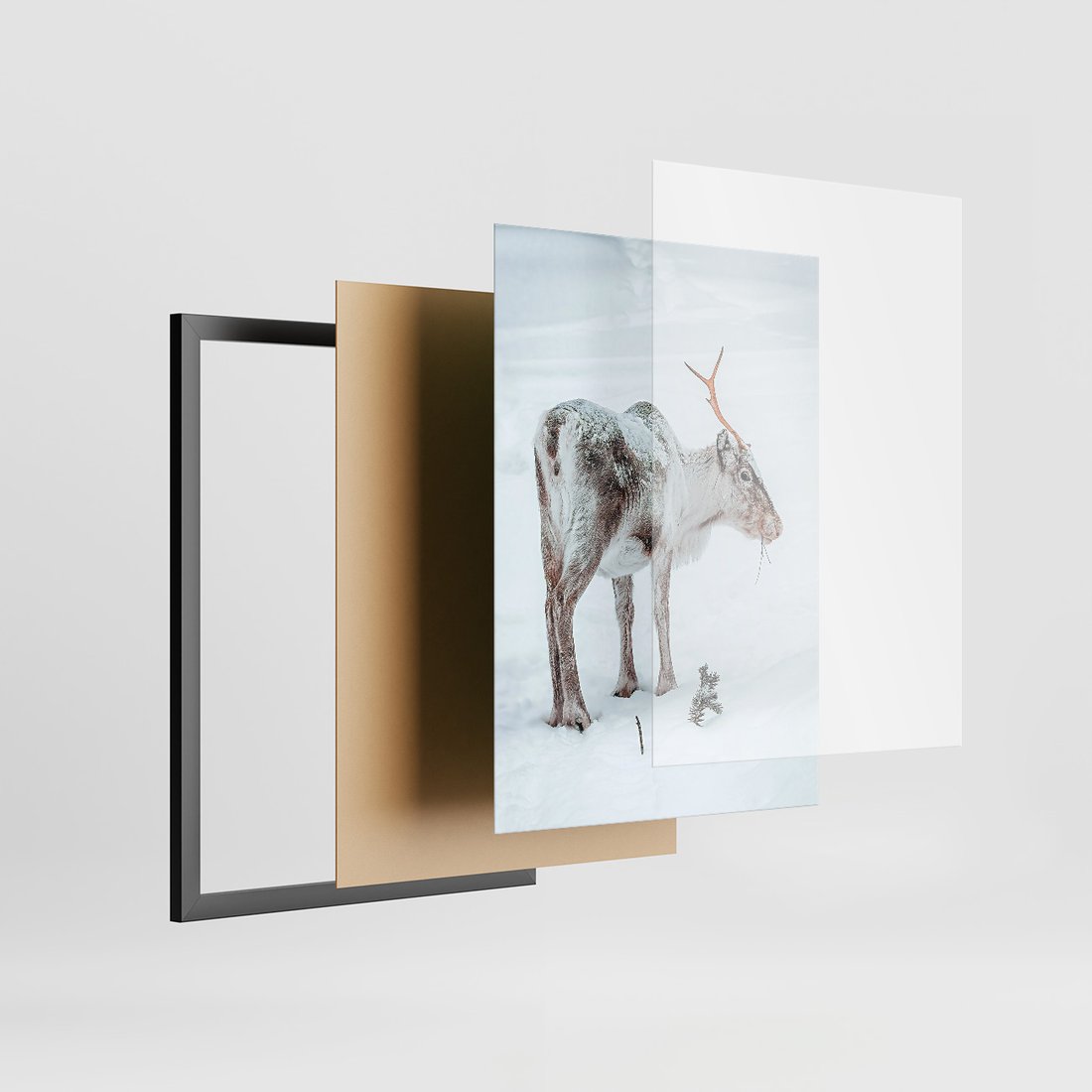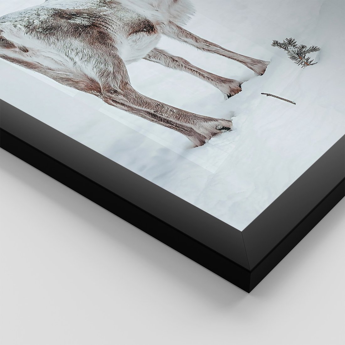 Zestaw obrazy w ramie, plakaty - renifer, śnieg, zima - rama czarna
