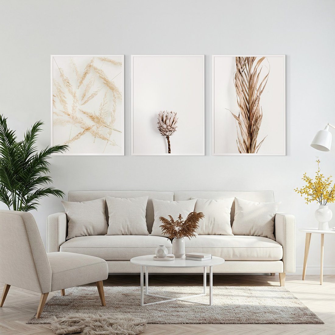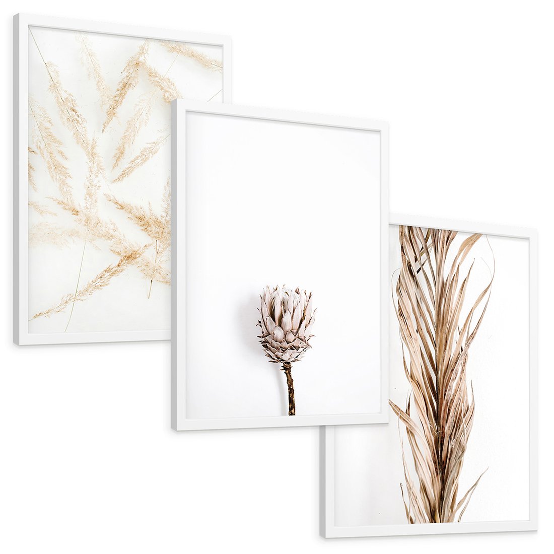 Zestaw obrazy w ramie, plakaty - roślina, suchy, kwiatostan - rama biała