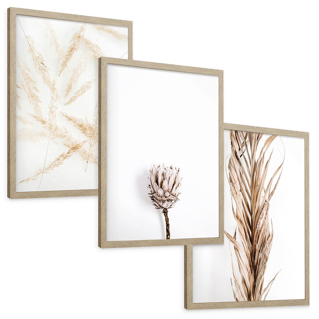 Zestaw obrazy w ramie, plakaty - roślina, suchy, kwiatostan - rama drewno