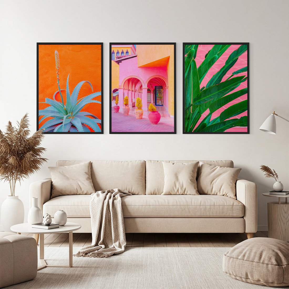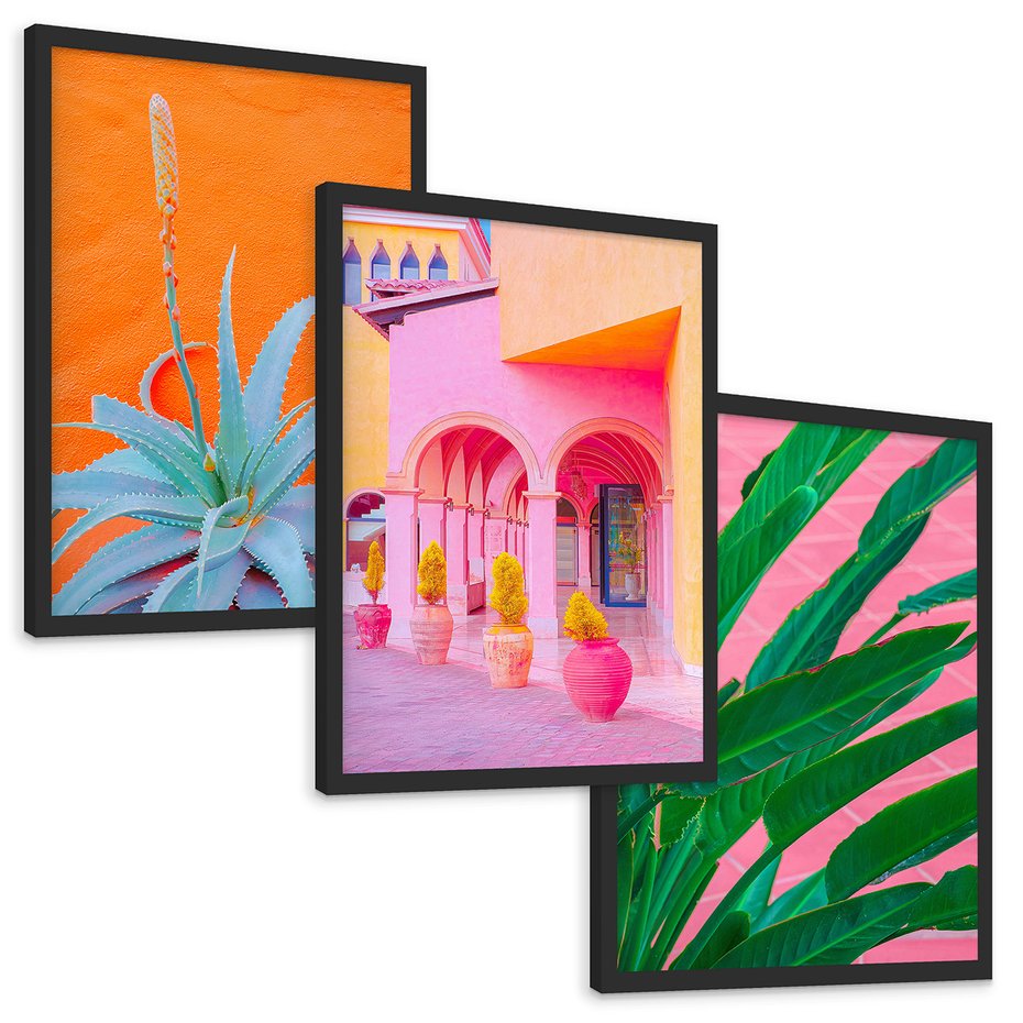 - Zestaw obrazy w ramie, plakaty - rośliny, architektura, tropikalne