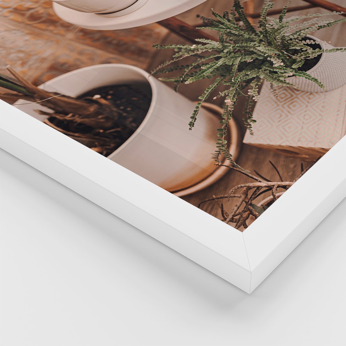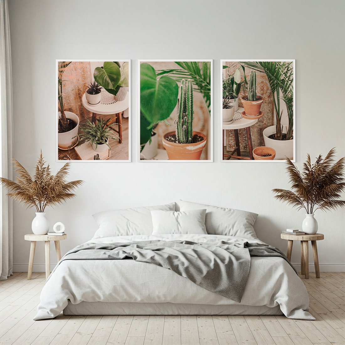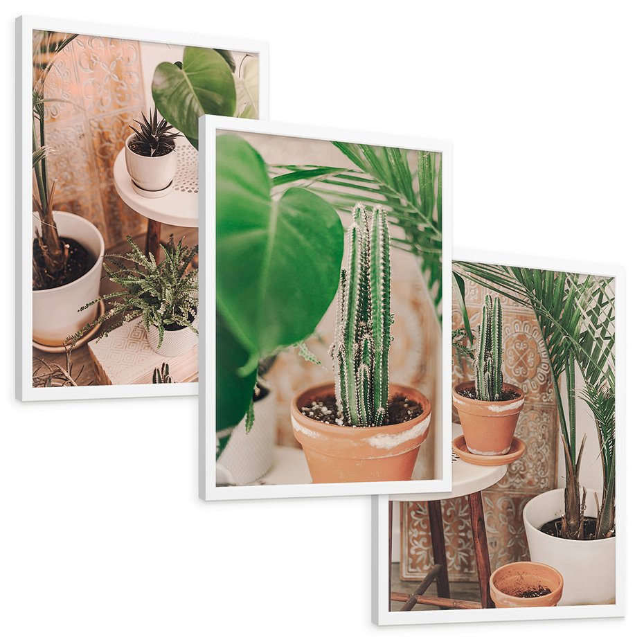 Zestaw obrazy w ramie, plakaty - rośliny, doniczki, wnętrze - rama biała