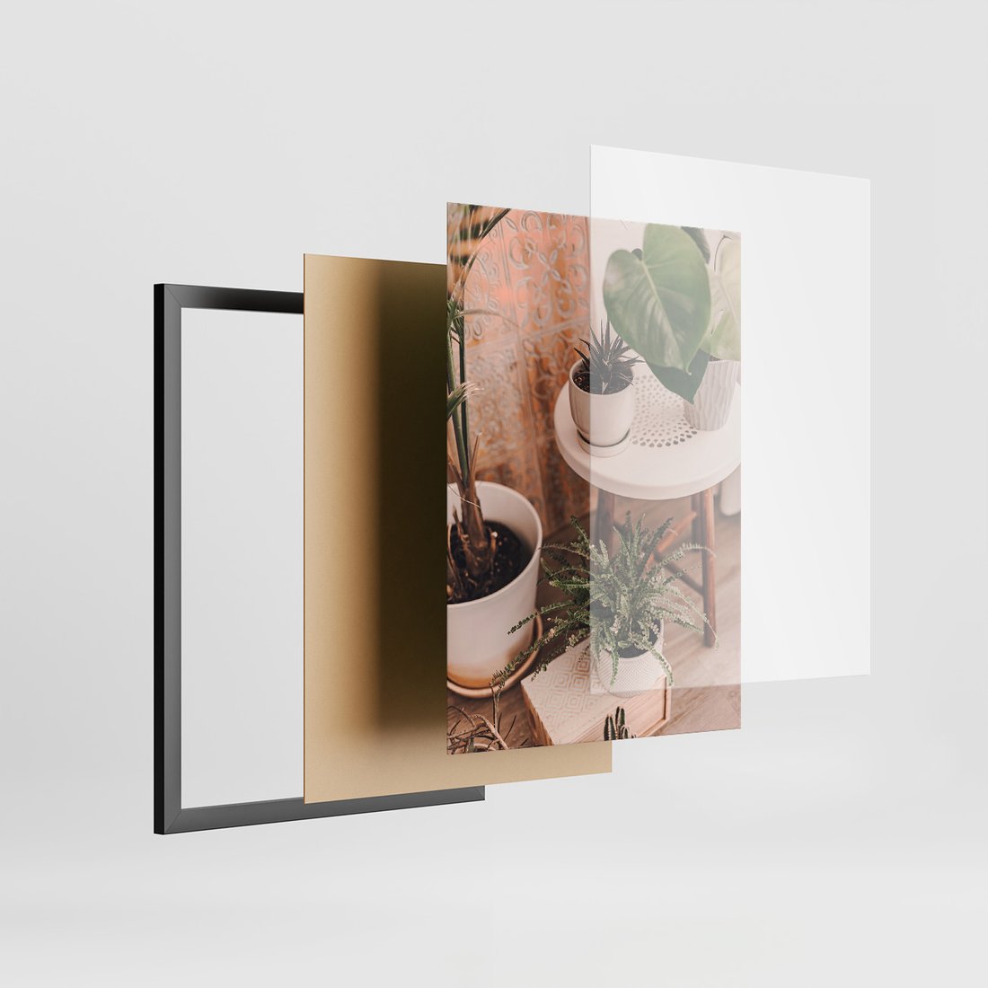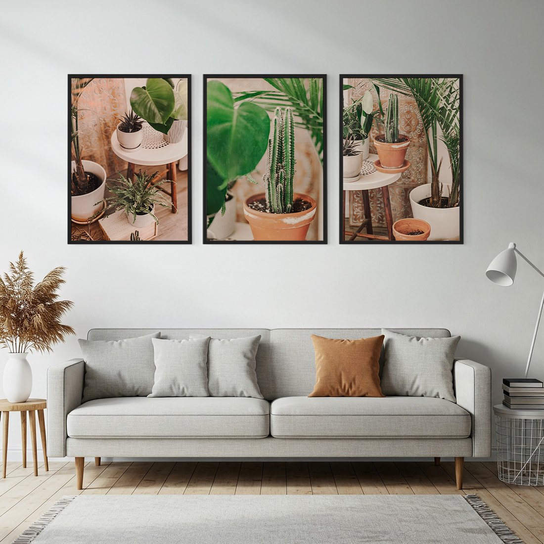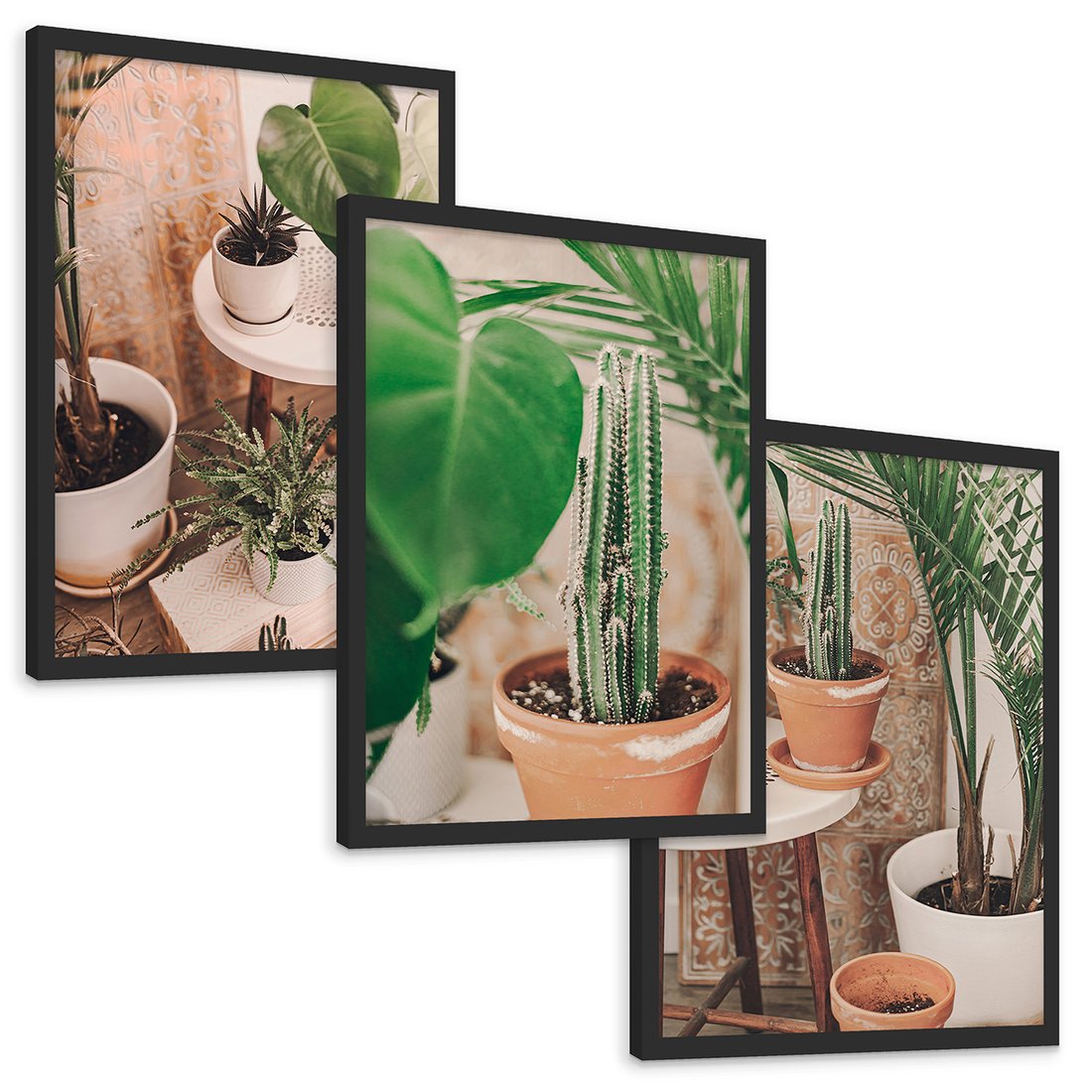 Zestaw obrazy w ramie, plakaty - rośliny, doniczki, wnętrze - rama czarna