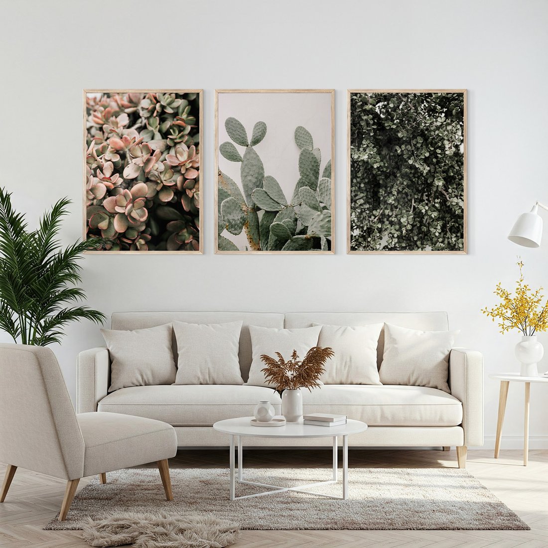 Przenieś piękno sztuki do swojego domu dzięki naszemu starannie skomponowanemu produktowi zestaw obrazów rośliny, kaktus, liście. Każdy plakat, oprawiony w elegancką ramę, łączy w sobie estetykę i trwałość. Uniwersalne wzornictwo sprawia, że te dekoracje ścienne doskonale komponują się z różnymi stylami wnętrz, od nowoczesnych po klasyczne. Łatwość montażu pozwala na szybką i bezproblemową metamorfozę Twojej przestrzeni. To również idealny pomysł na wyszukany prezent, który z pewnością zachwyci.