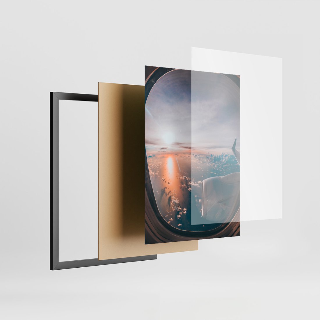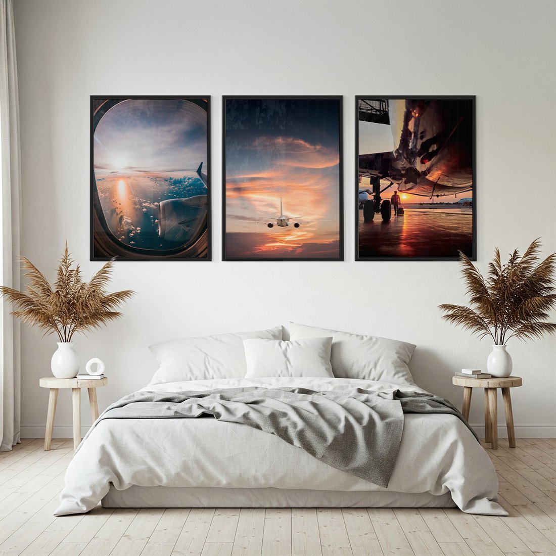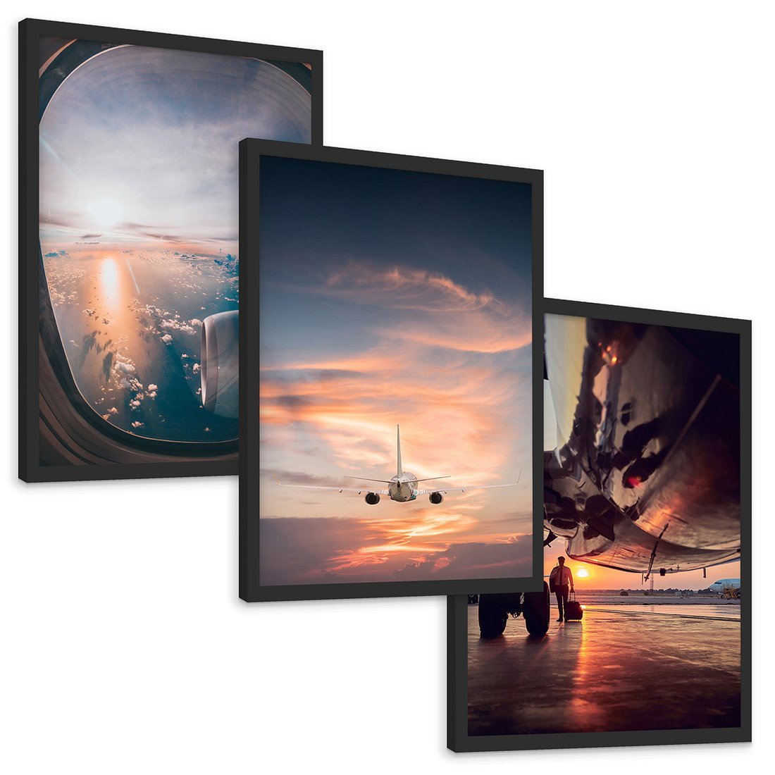 Zestaw obrazy w ramie, plakaty - samolot, niebo, podróż - rama czarna