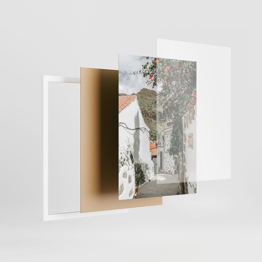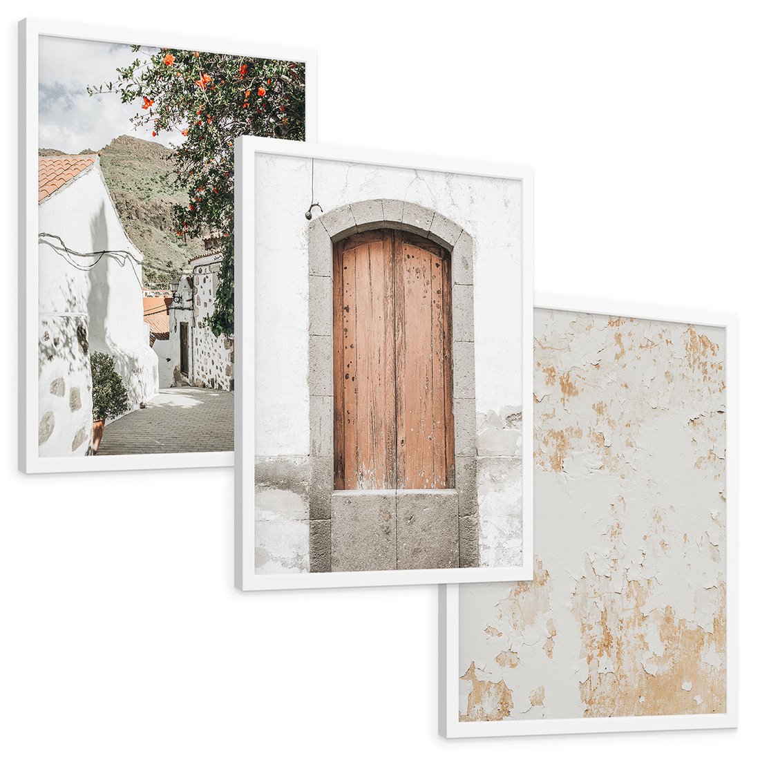 Zestaw obrazy w ramie, plakaty - ściana, drzwi, miasto - rama biała