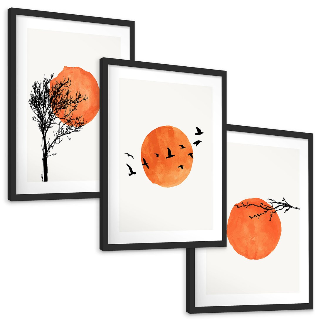 - Zestaw obrazy w ramie, plakaty - Słońce, Ptaki, Drzewa