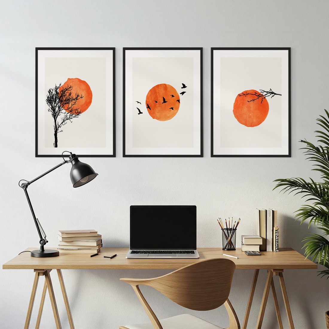 Przenieś piękno sztuki do swojego domu dzięki naszemu starannie skomponowanemu produktowi zestaw obrazów Słońce, Ptaki, Drzewa. Każdy plakat, oprawiony w elegancką ramę, łączy w sobie estetykę i trwałość. Uniwersalne wzornictwo sprawia, że te dekoracje ścienne doskonale komponują się z różnymi stylami wnętrz, od nowoczesnych po klasyczne. Łatwość montażu pozwala na szybką i bezproblemową metamorfozę Twojej przestrzeni. To również idealny pomysł na wyszukany prezent, który z pewnością zachwyci.