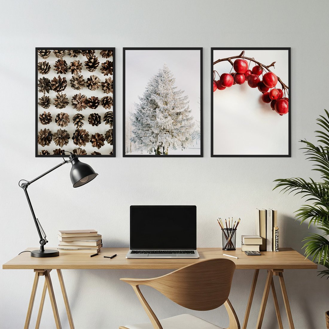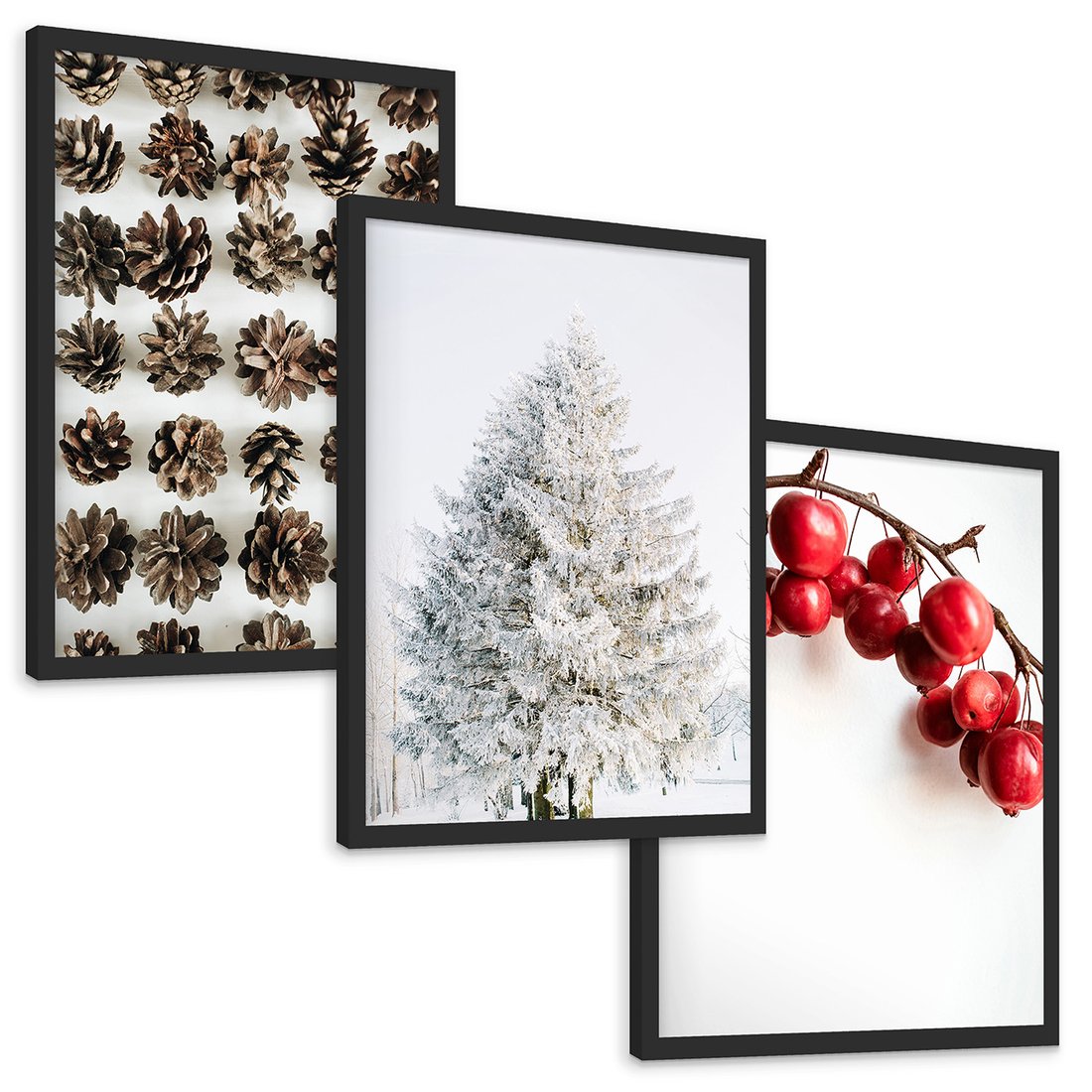- Zestaw obrazy w ramie, plakaty - szyszki, jabłka, zima
