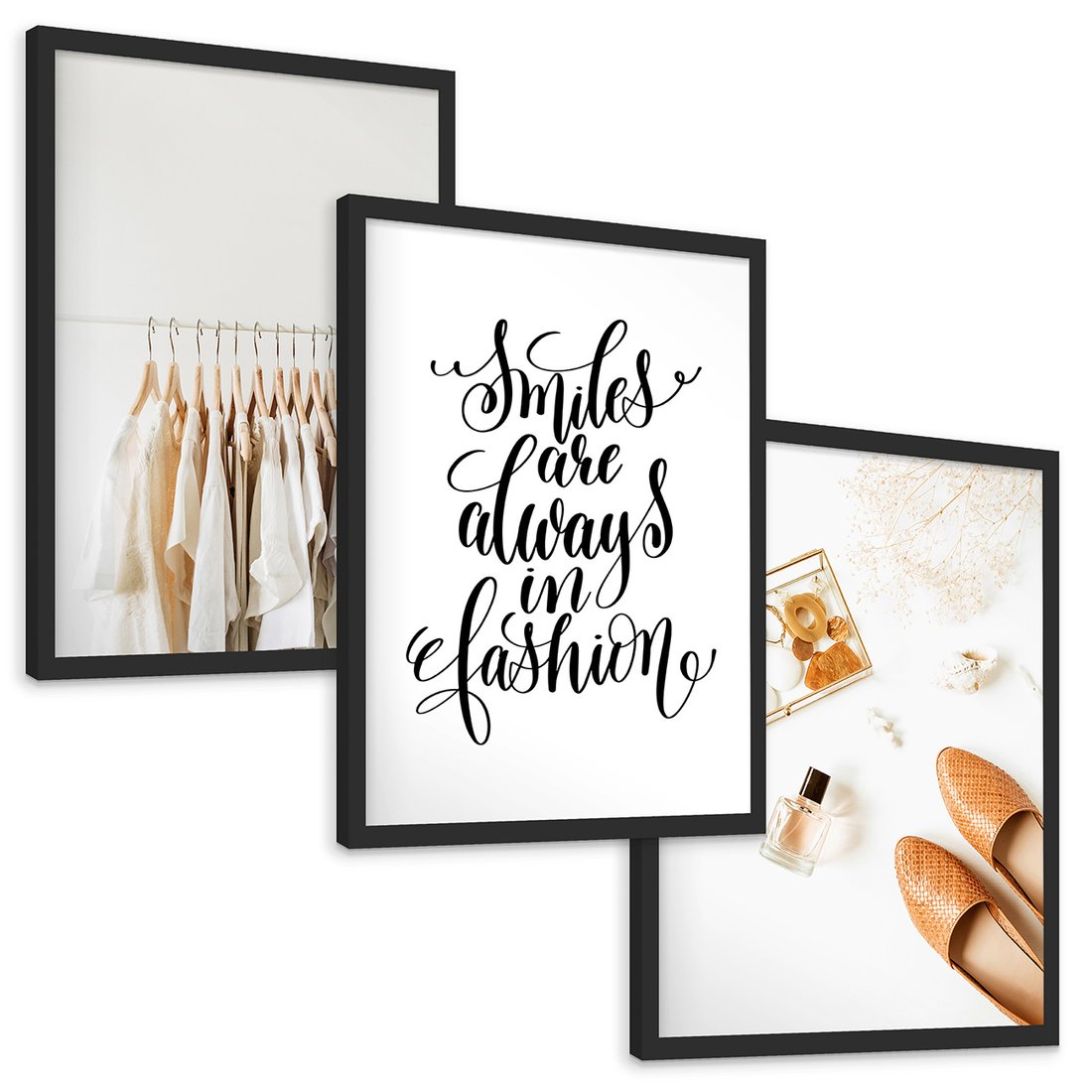 Zestaw obrazy w ramie, plakaty - ubrania, akcesoria, minimalizm - rama czarna