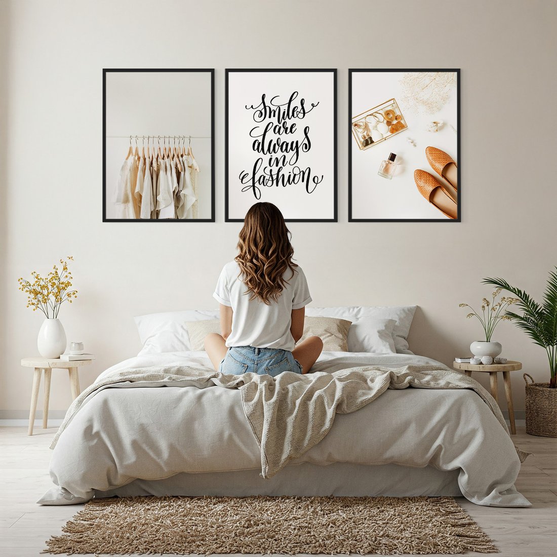 Przenieś piękno sztuki do swojego domu dzięki naszemu starannie skomponowanemu produktowi zestaw obrazów ubrania, akcesoria, minimalizm. Każdy plakat, oprawiony w elegancką ramę, łączy w sobie estetykę i trwałość. Uniwersalne wzornictwo sprawia, że te dekoracje ścienne doskonale komponują się z różnymi stylami wnętrz, od nowoczesnych po klasyczne. Łatwość montażu pozwala na szybką i bezproblemową metamorfozę Twojej przestrzeni. To również idealny pomysł na wyszukany prezent, który z pewnością zachwyci.