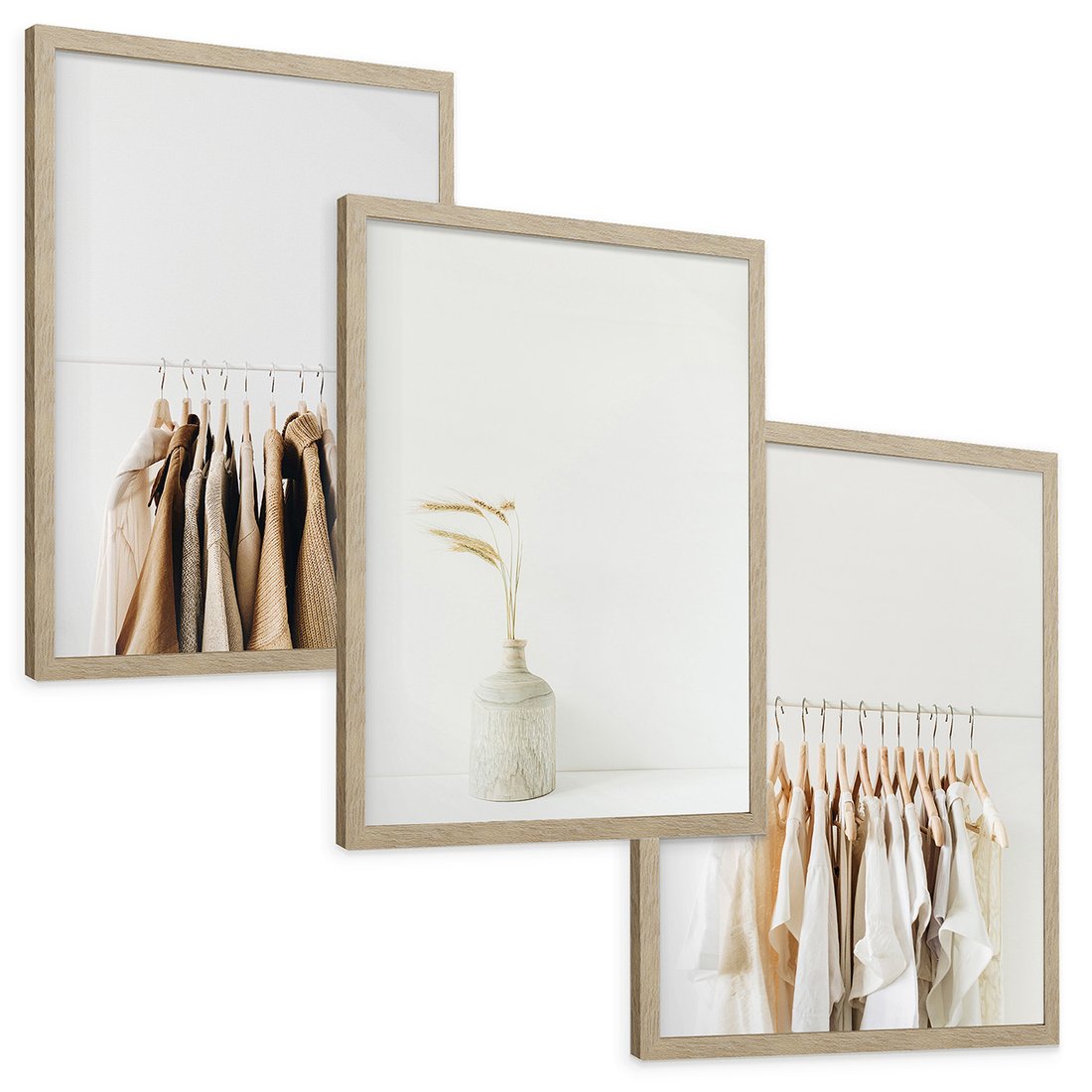 Zestaw obrazy w ramie, plakaty - ubrania, wazon, beżowy - rama drewno