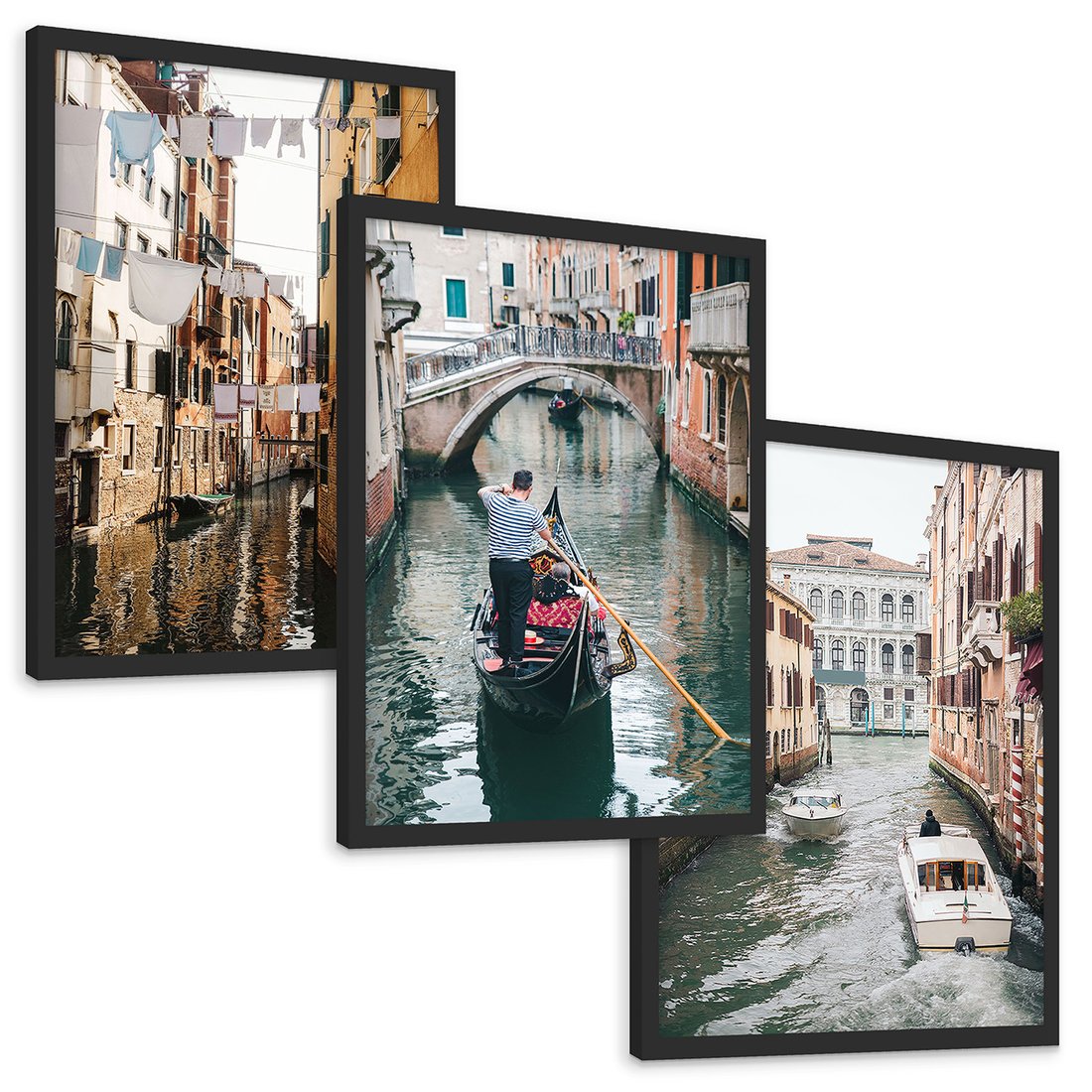 Zestaw obrazy w ramie, plakaty - Wenecja, gondola, kanał - rama czarna