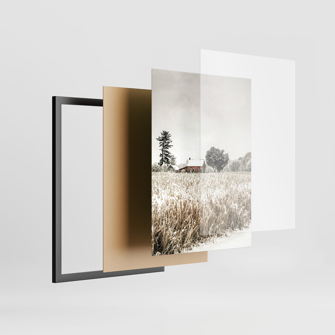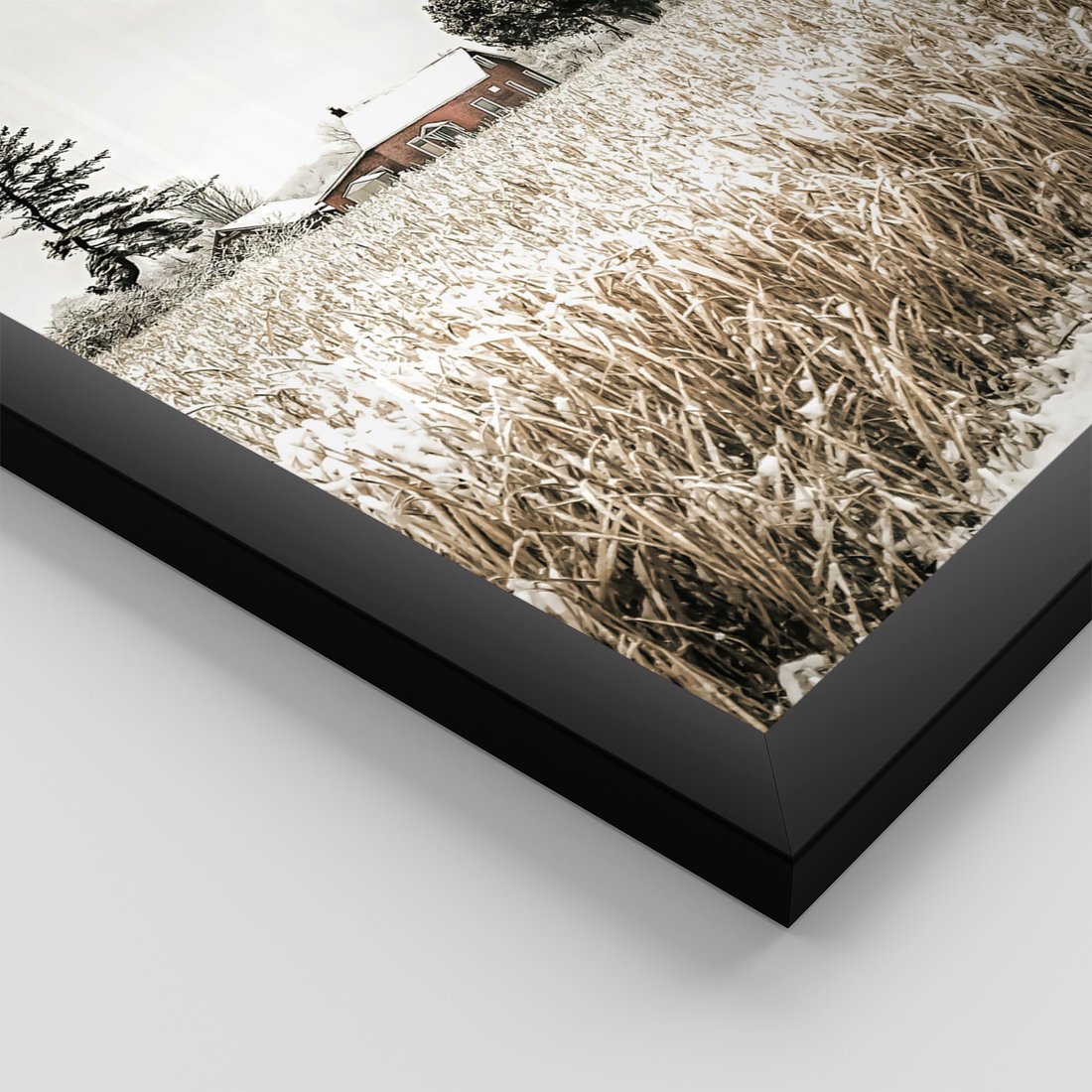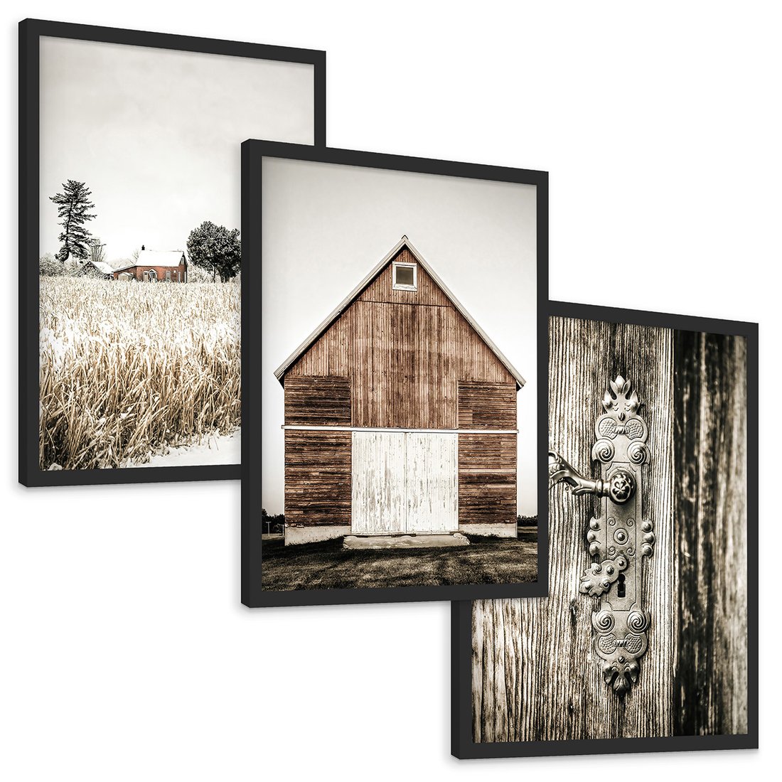 Zestaw obrazy w ramie, plakaty - wieś, dom, drewno - rama czarna