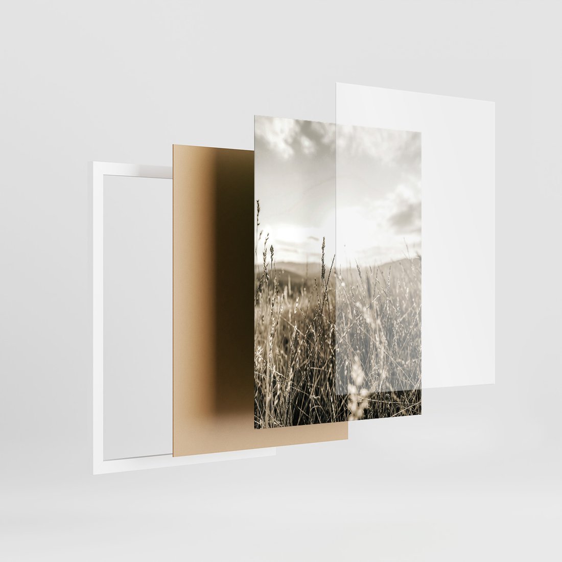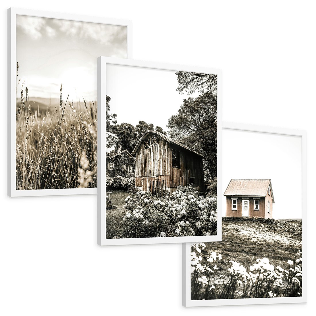 Zestaw obrazy w ramie, plakaty - wieś, natura, budynki - rama biała