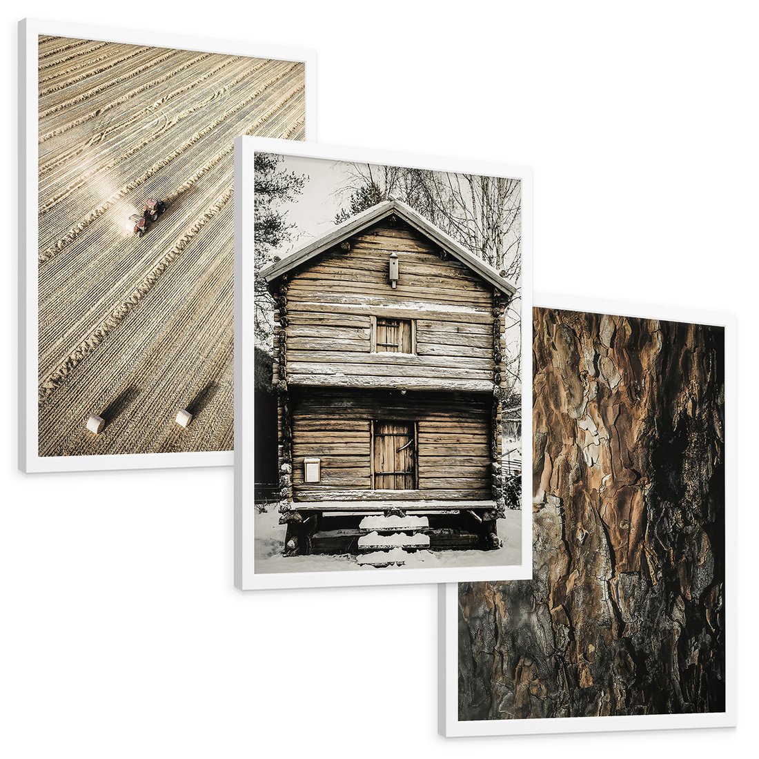 Zestaw obrazy w ramie, plakaty - ziemia, traktor, kora - rama biała