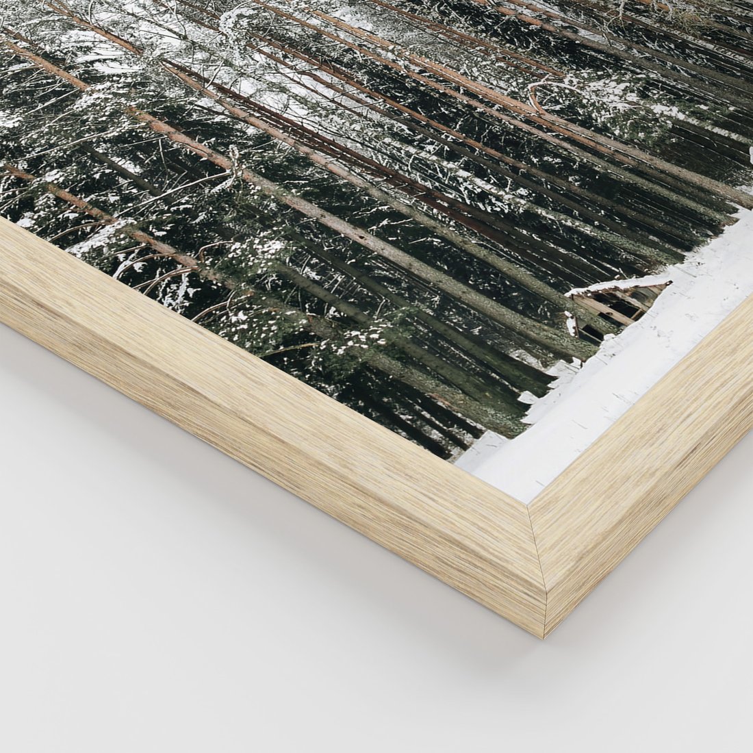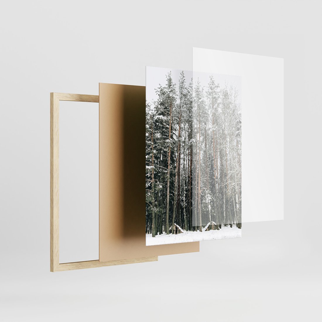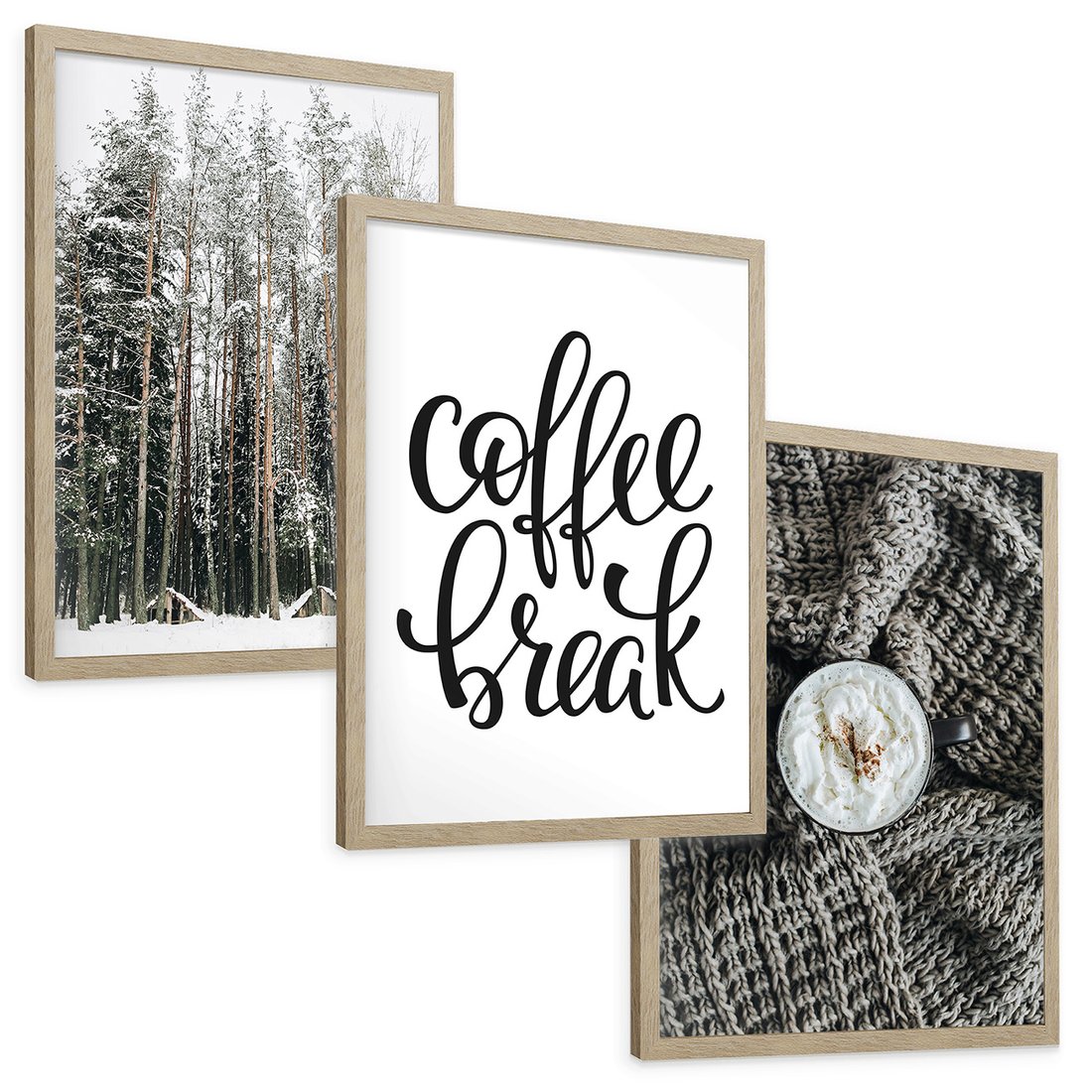 Zestaw obrazy w ramie, plakaty - zima, las, napój - rama drewno